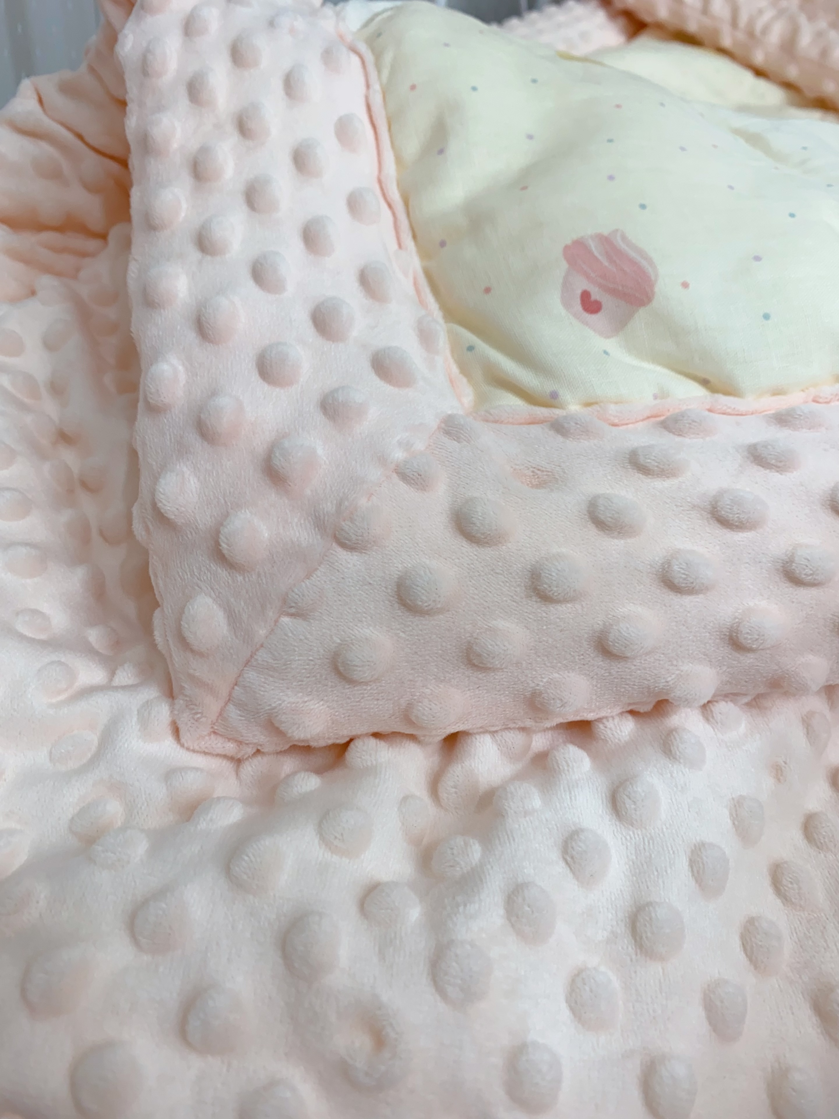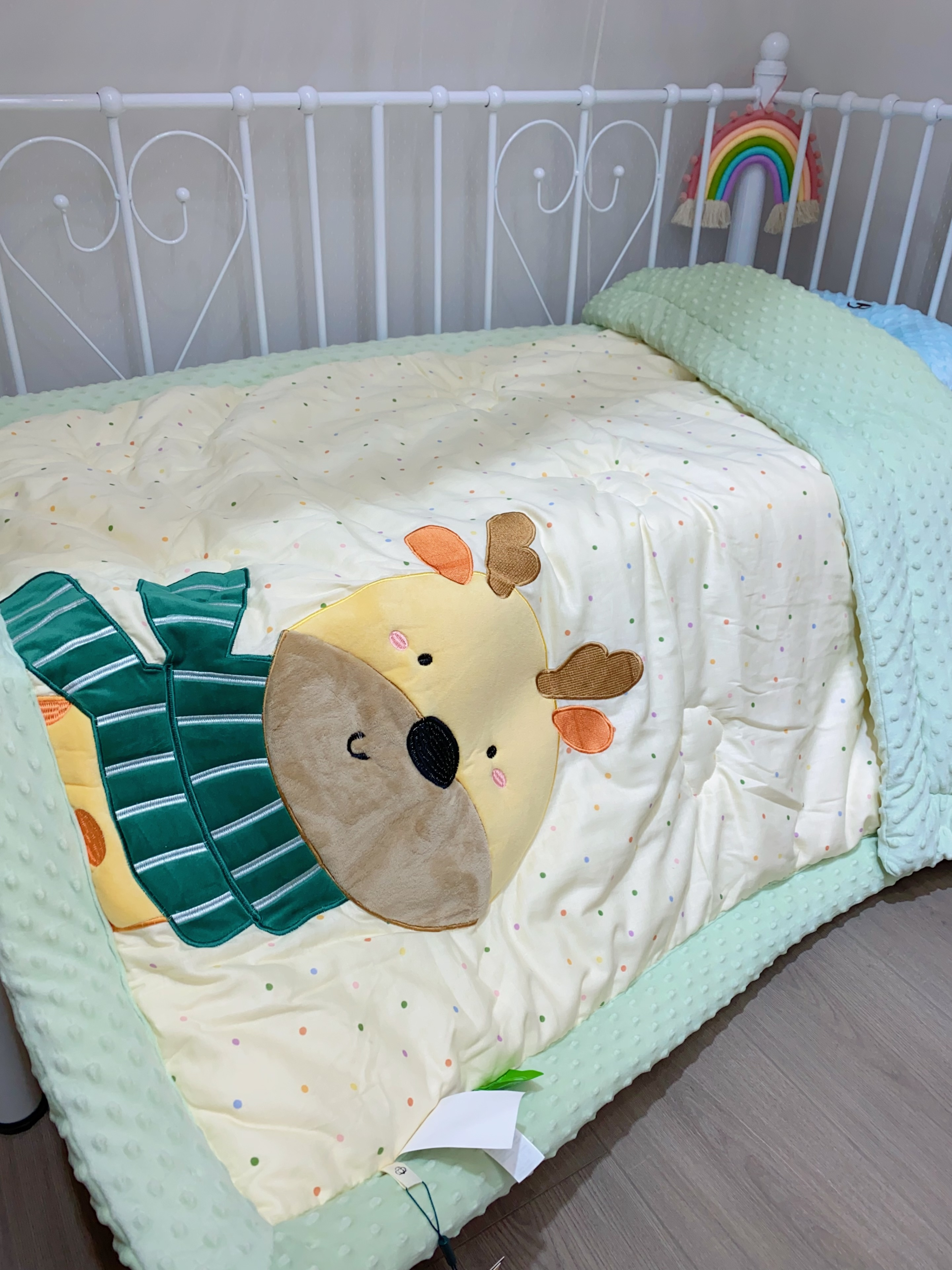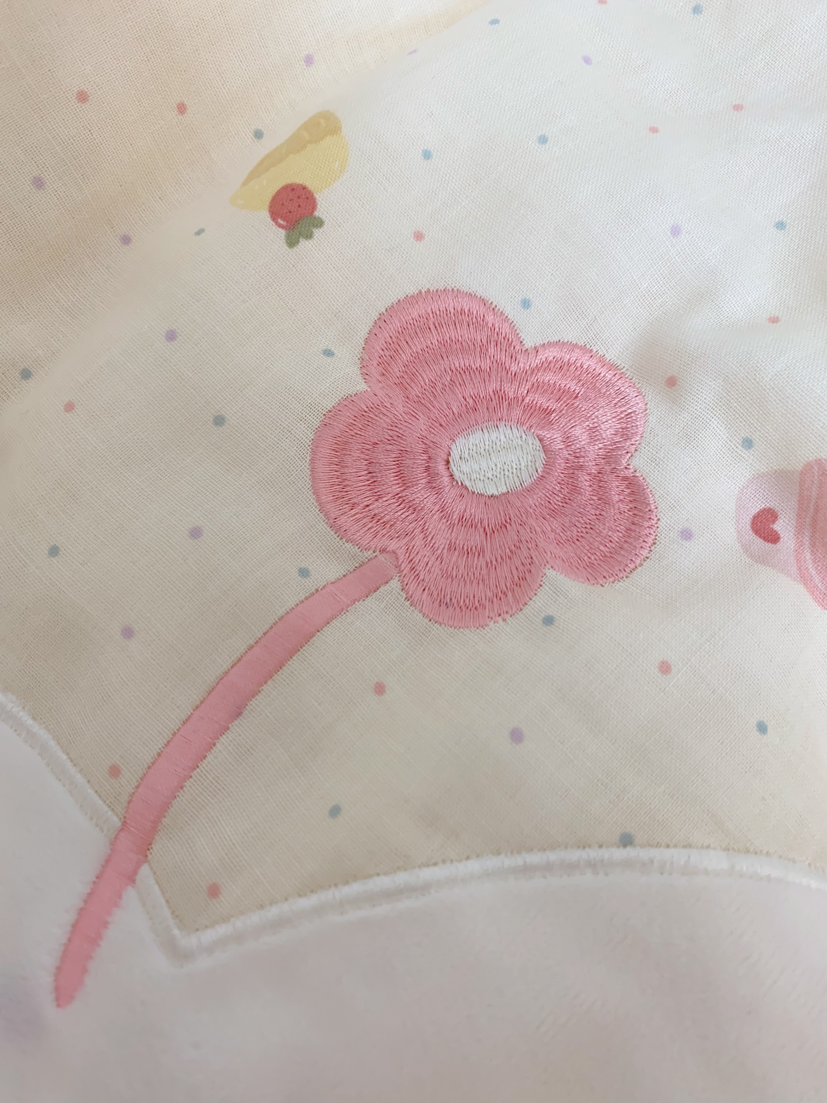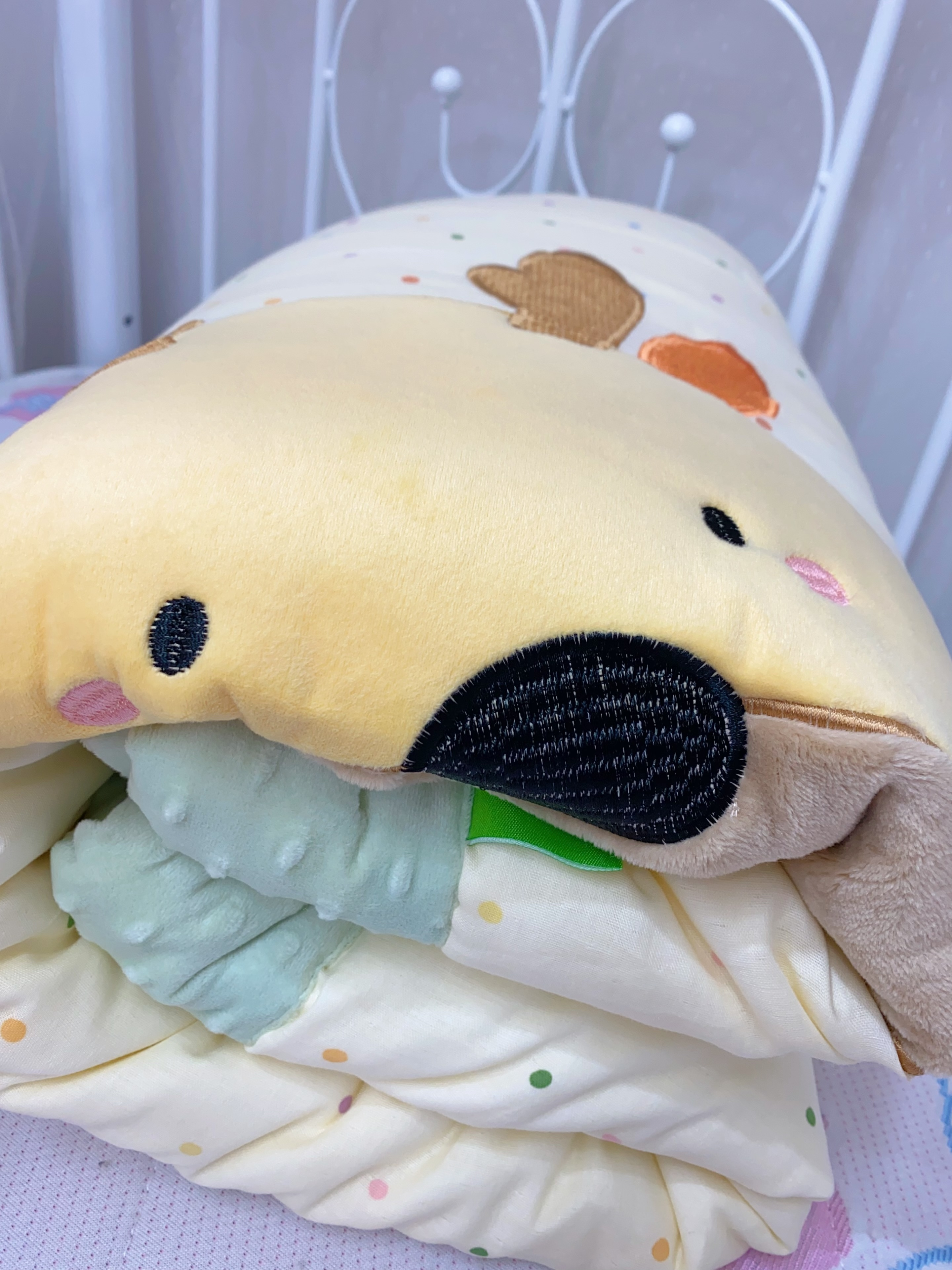面料:正面双层纱布➕萌趣绣花贴片,反面豆豆绒