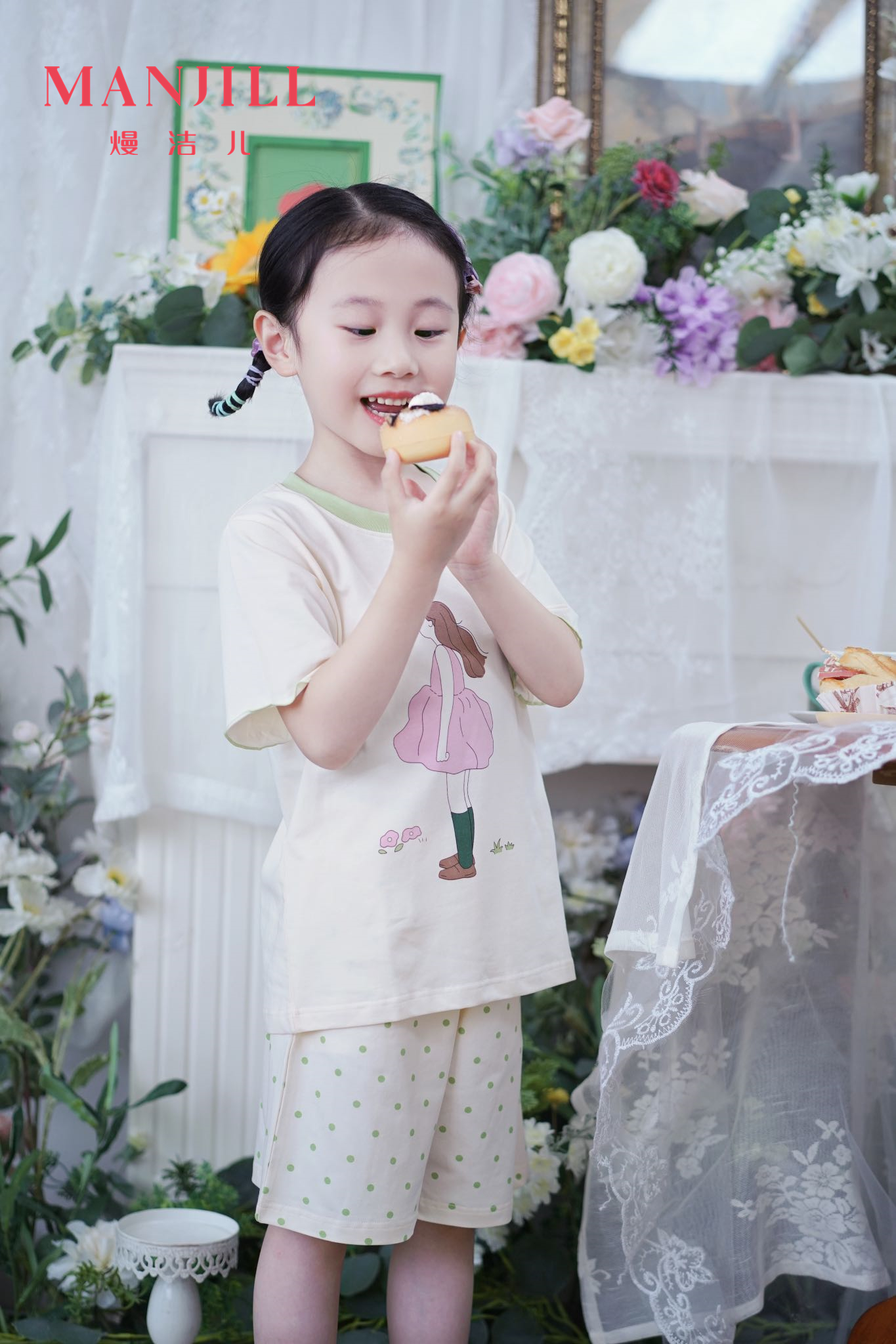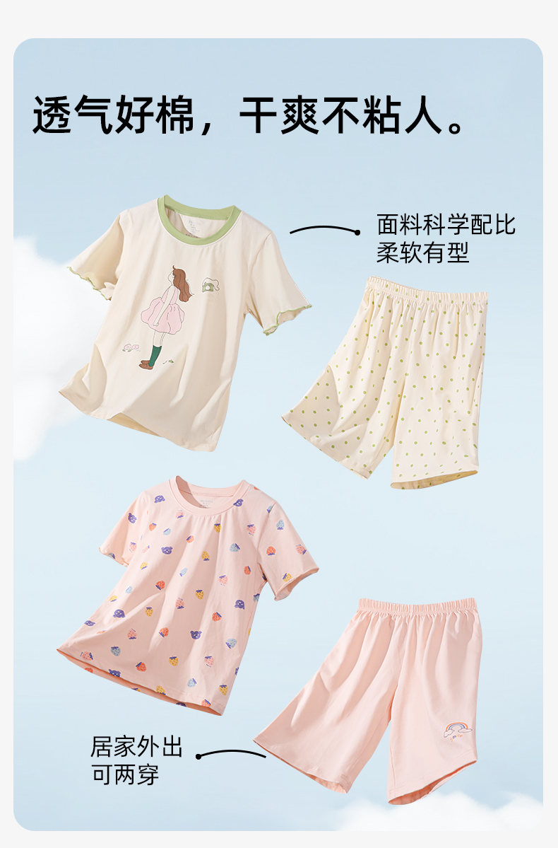 【130-140码】【商场同款】熳洁儿 夏季儿童家居服可爱95棉套装短袖短裤23203663