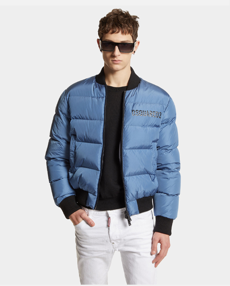DSQUARED2 男士字母徽标印花绗缝羽绒服 蓝色 S74AM1508 S53817 494