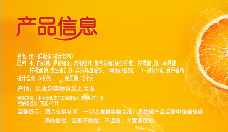统一鲜橙多310ml*24罐