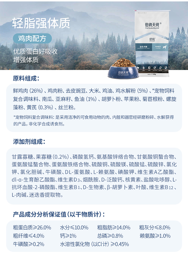 伯纳天纯舒纯鸭肉梨12kg狗粮成犬幼犬通用犬粮24斤