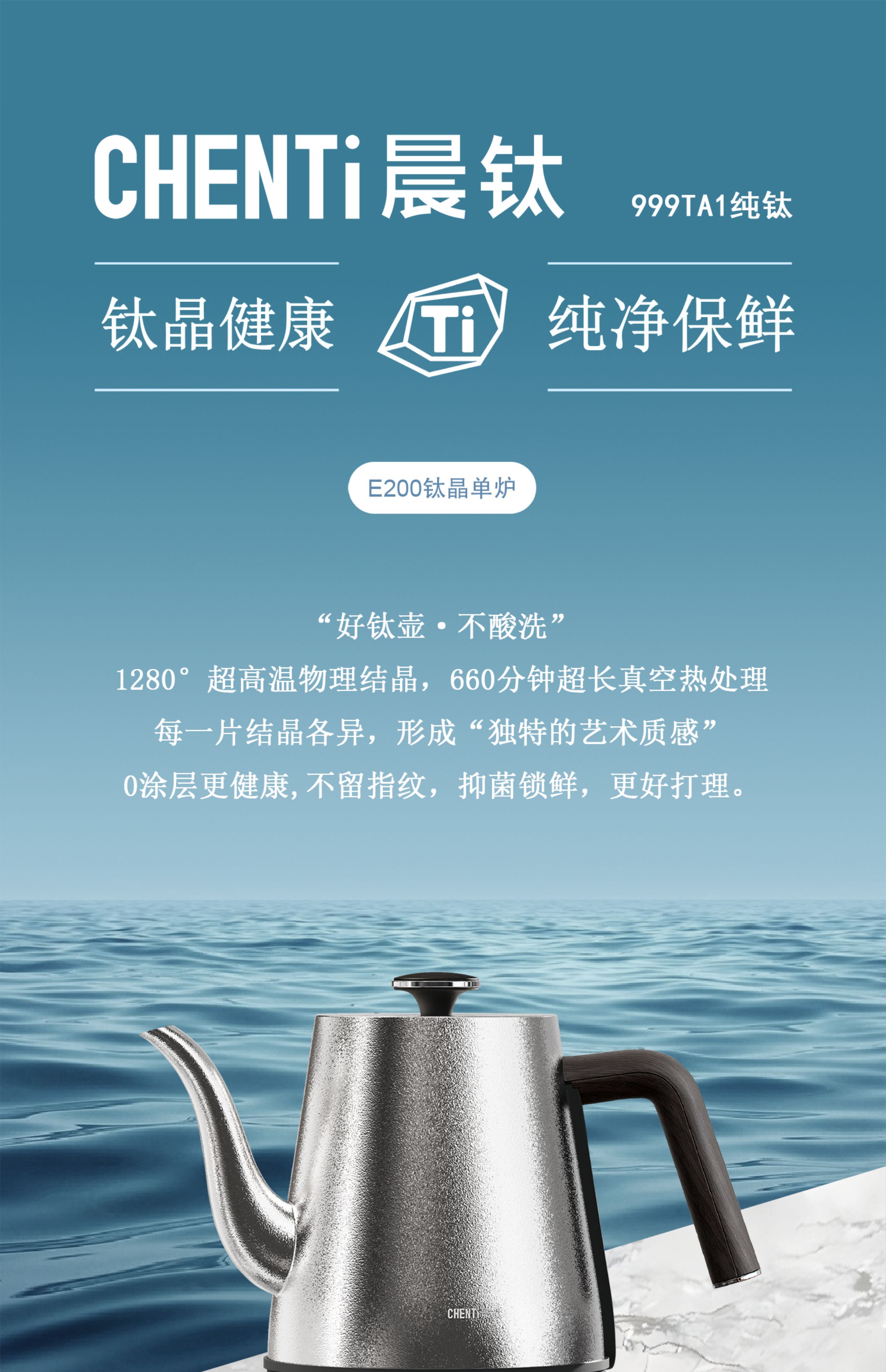 晨钛E200结晶纯钛底部上水全自动烧水壶泡茶电热水壶煮茶壶家用