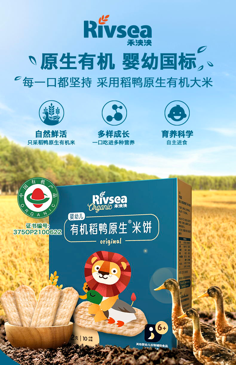 送婴幼儿磨牙棒 | 禾泱泱 有机婴幼儿稻鸭原生米饼 宝宝辅食零食磨牙饼干6月+