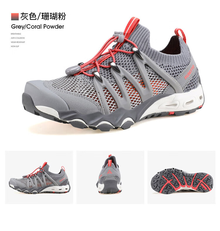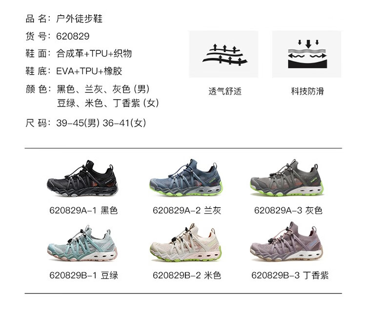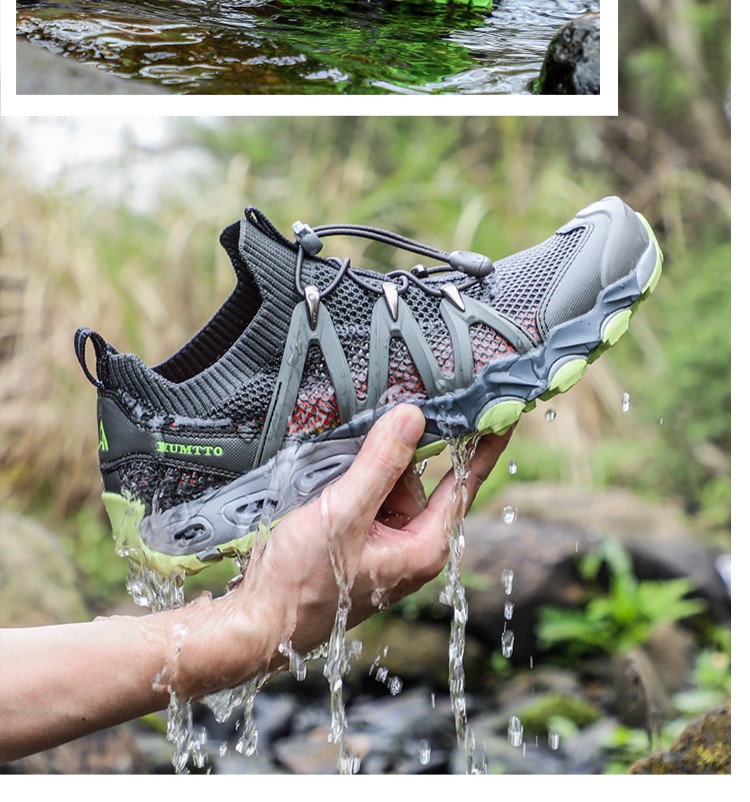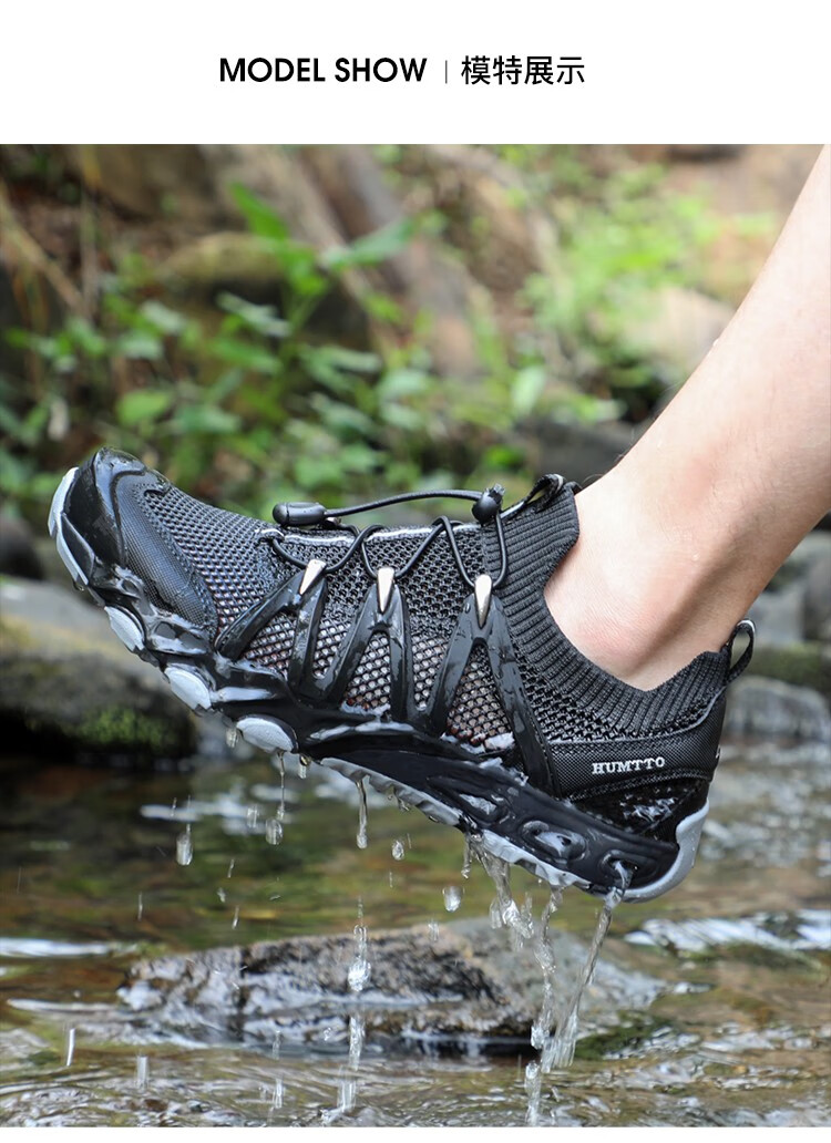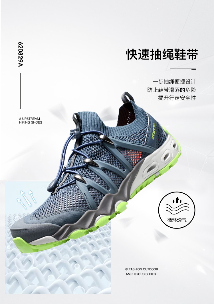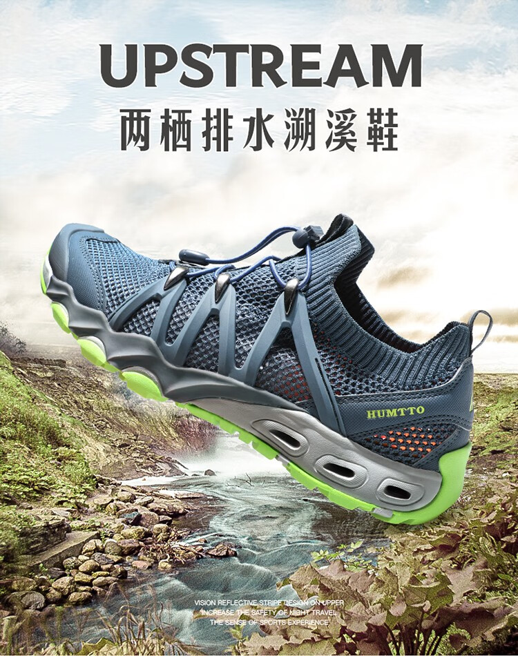 【新品198秒杀!】悍途(HUMTTO)新款户外溯溪鞋男透气排水耐磨防滑夜光抽绳鞋带徒步鞋 620829A/B