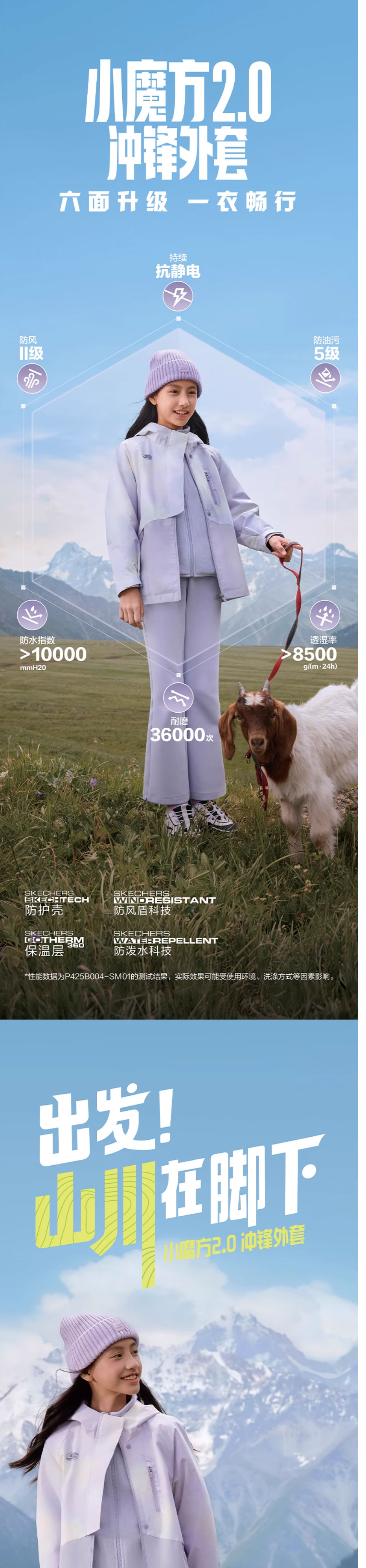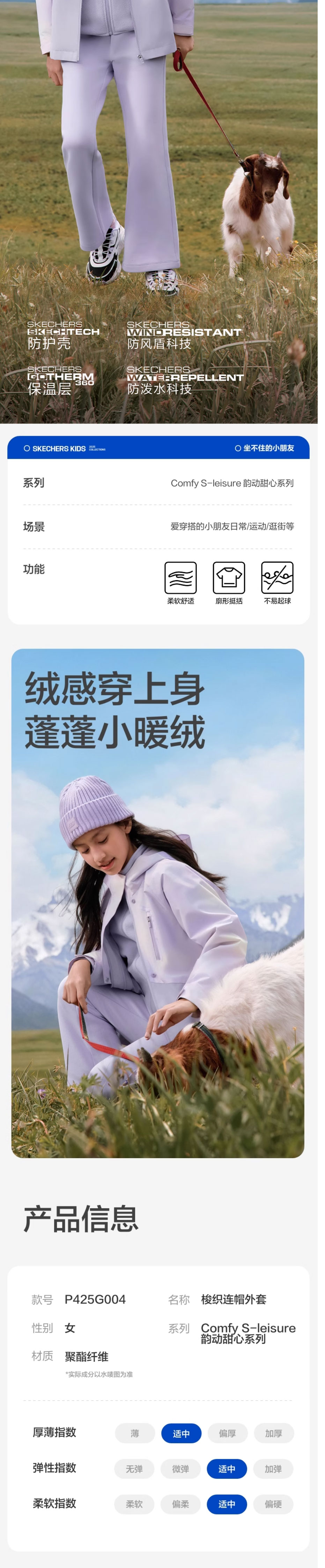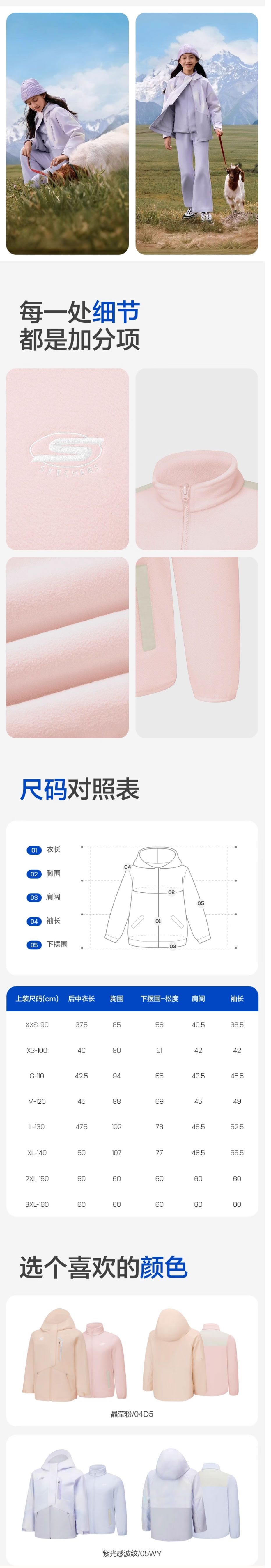Skechers斯凯奇女童户外防风保温两件套防静电防污外套P425G004-05WY