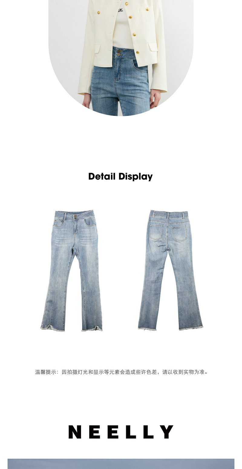 NEELLY纳俪商场同款春季新款复古修身百搭微喇裤女显瘦慵懒长裤N25074H04562