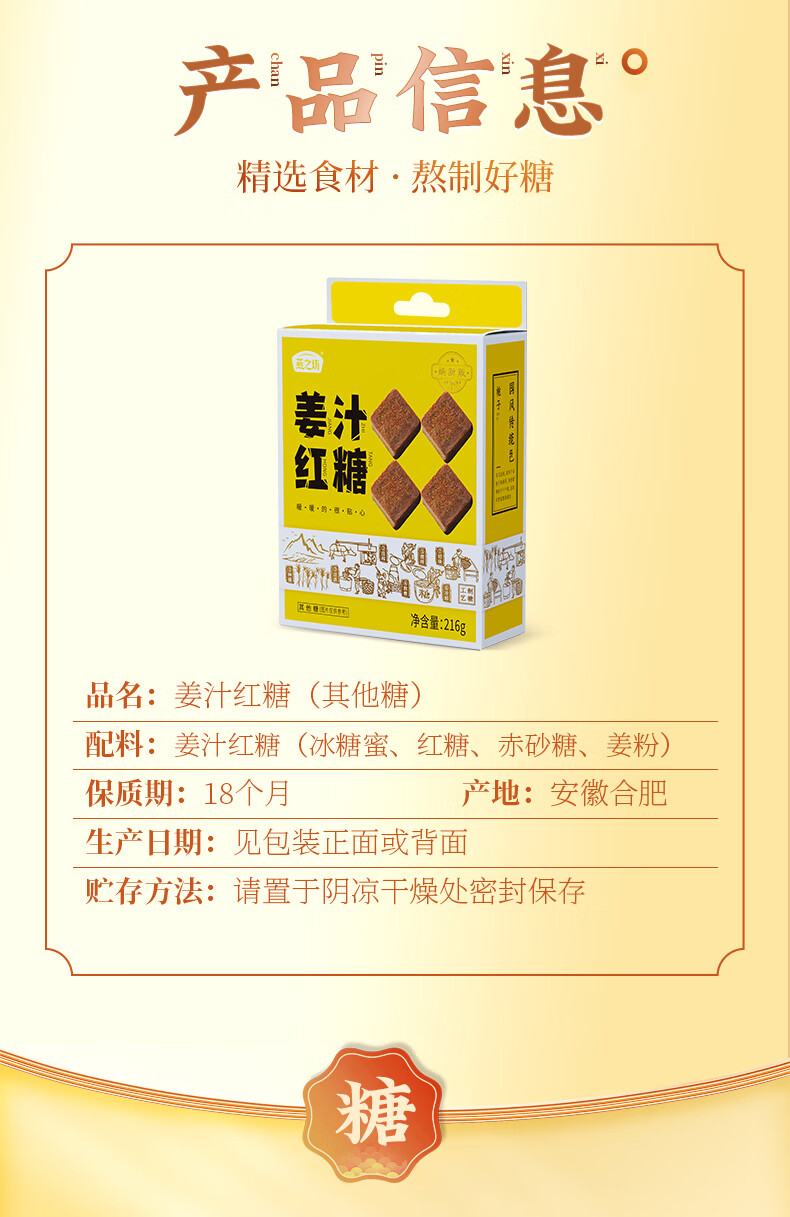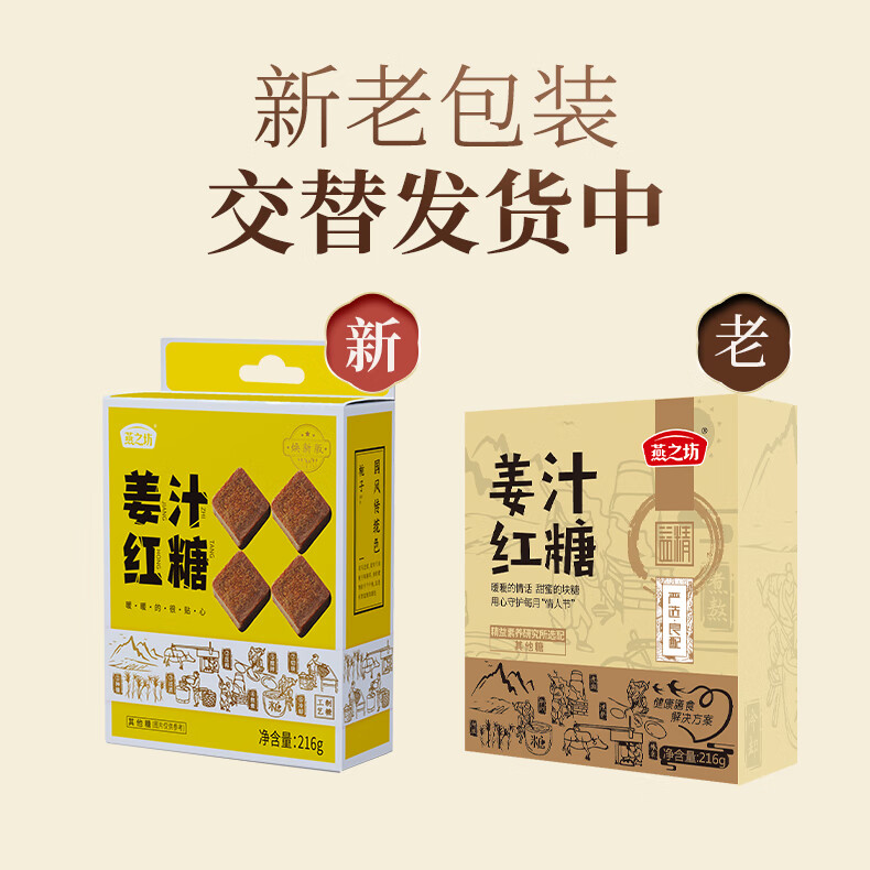 燕之坊 姜汁红糖小袋装 红糖姜茶大姨妈宫寒姜汤浓姜糖块216g