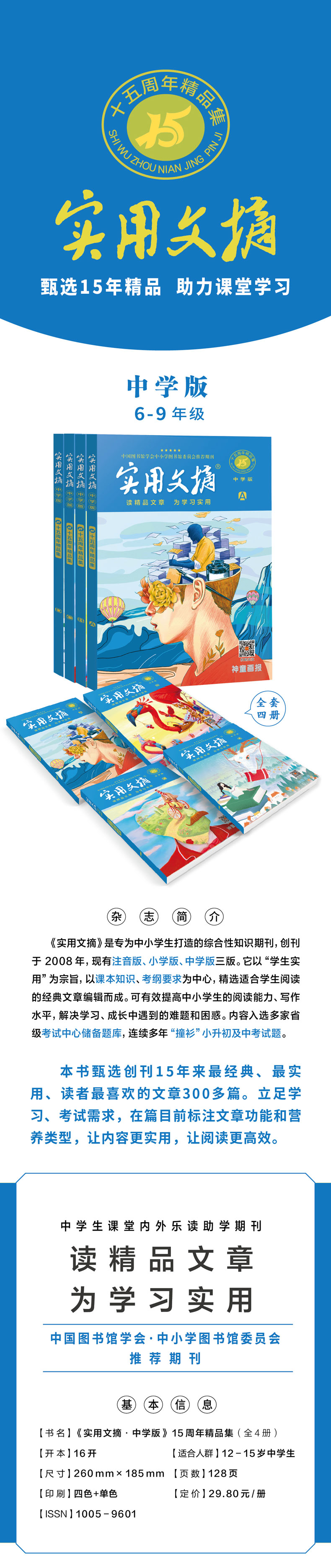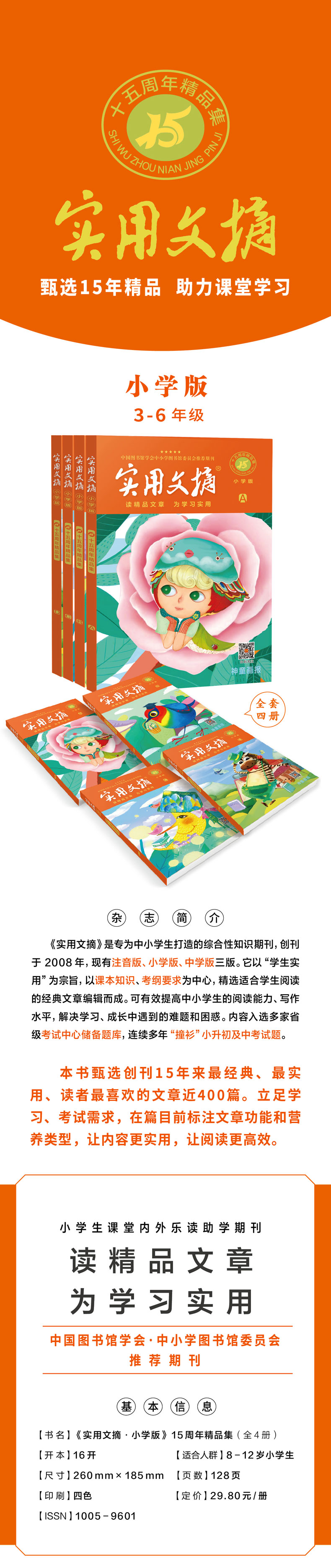《实用文摘》15周年精品集 小学版 / 中学版 3-9年级 经典作文素材 阅读
