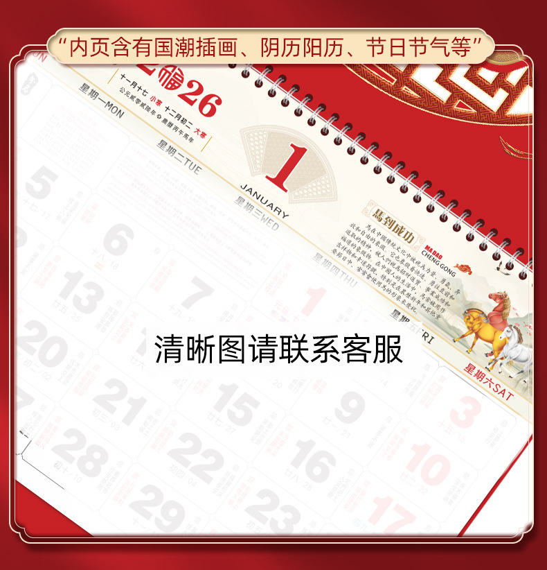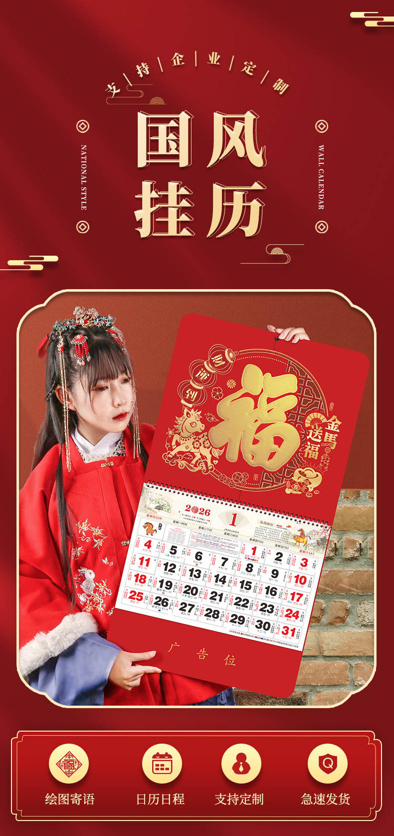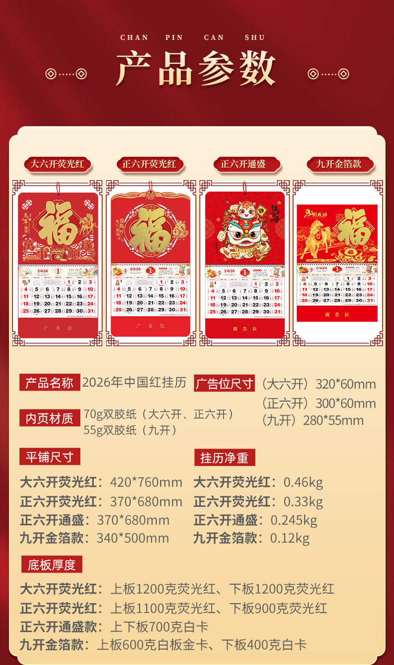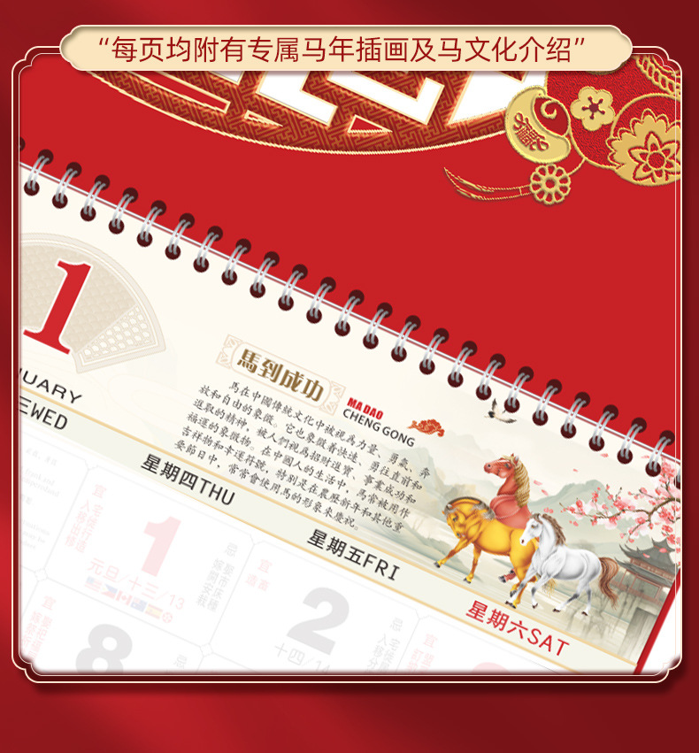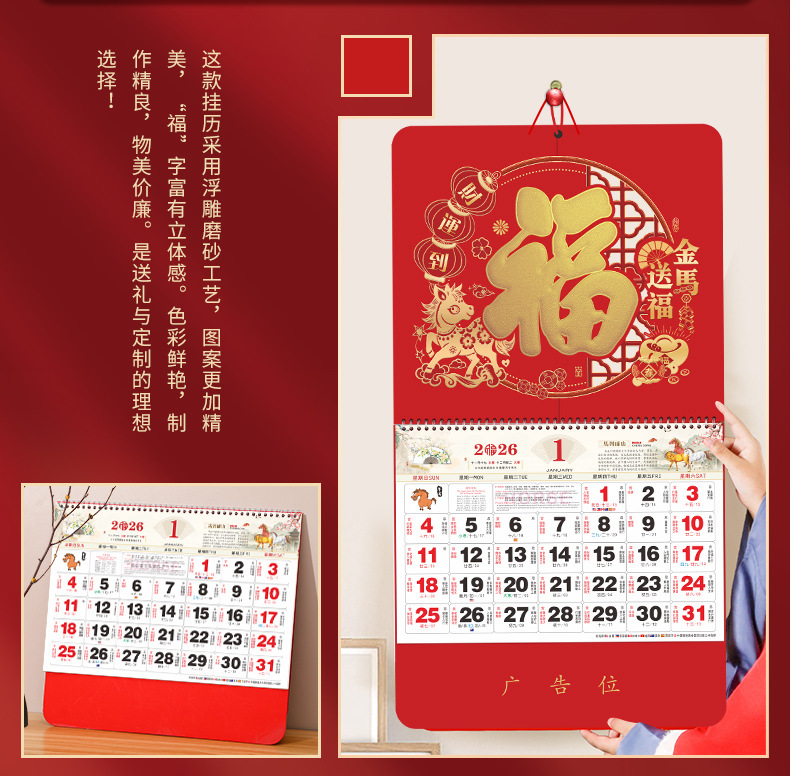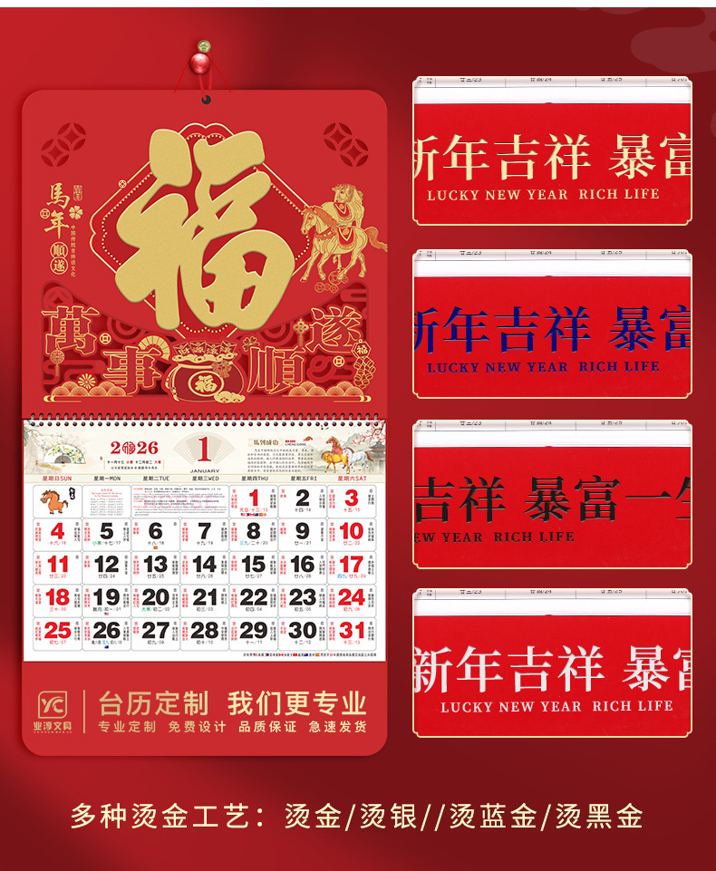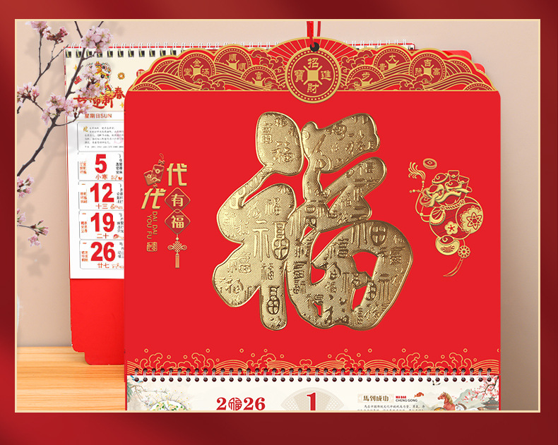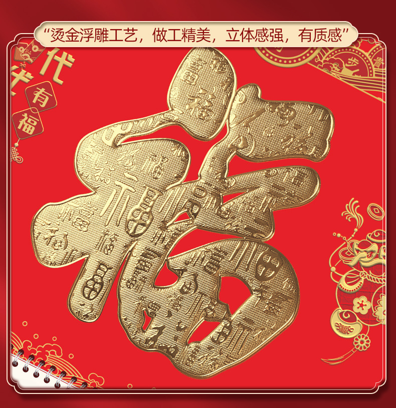 【马年福字挂历】浮雕烫金吊牌日历 福牌月历