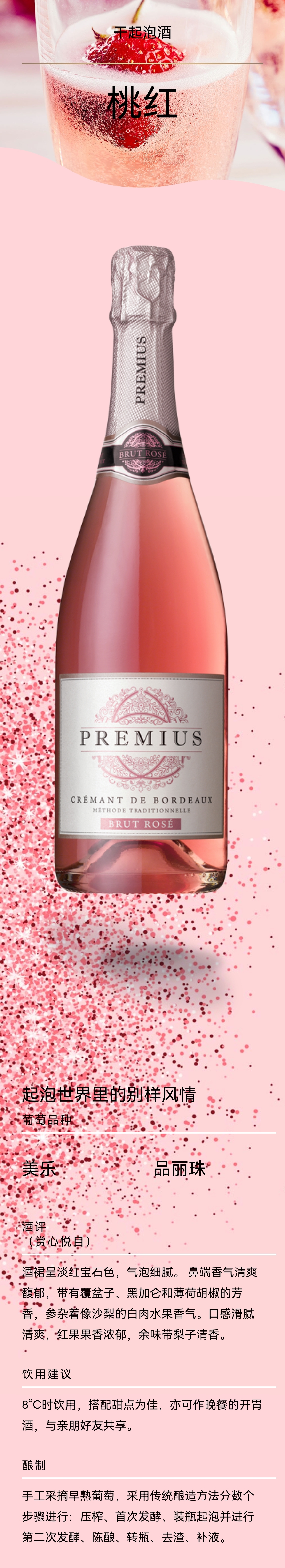 普莱密斯桃红起泡葡萄酒+单支口袋 Premius Cremant de Bordeaux Rose 750ml