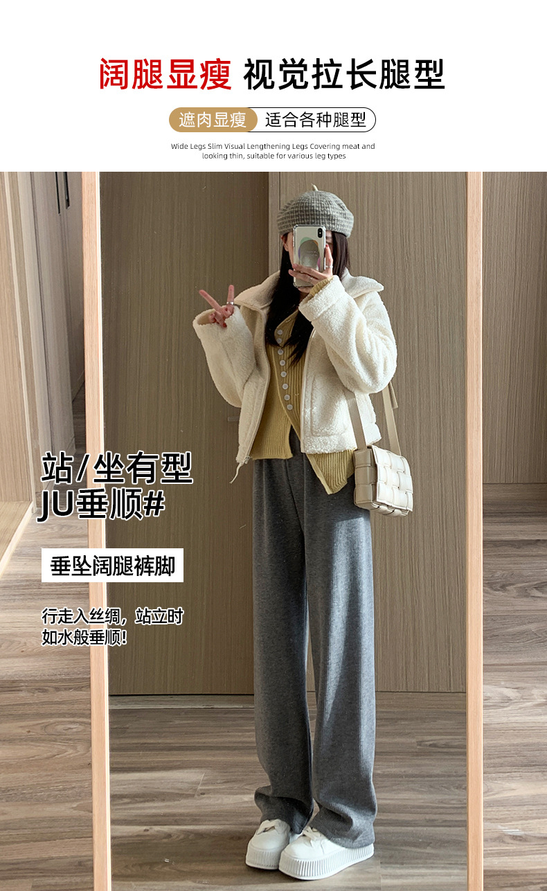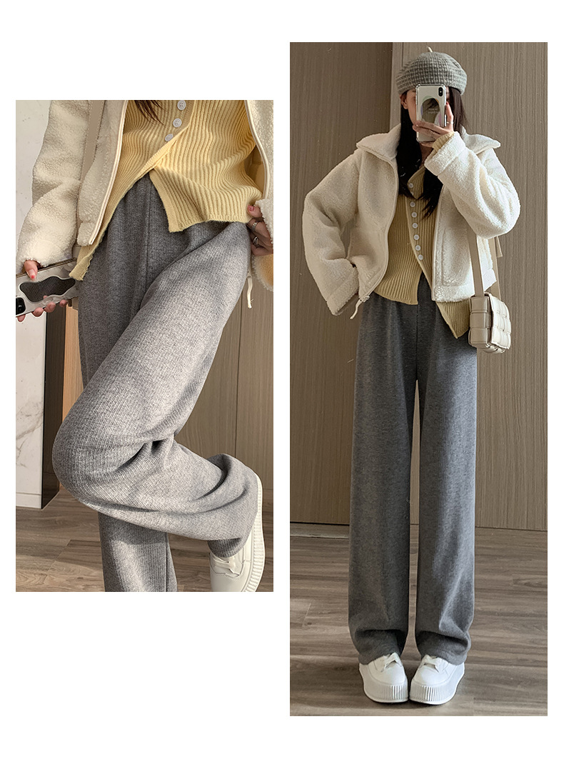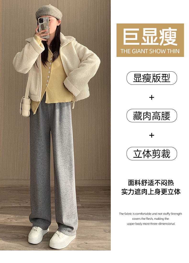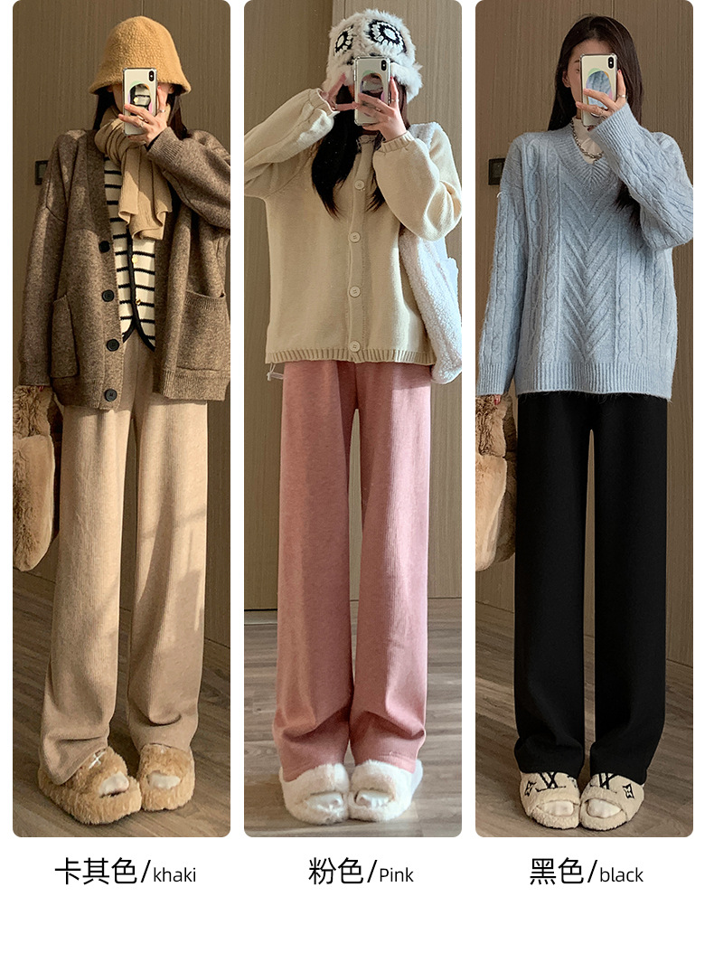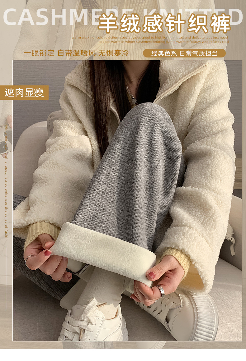 不磨白不起球【仿羊绒加绒阔腿裤】秋冬软糯针织阔腿裤 高腰垂感十足 直筒窄版休闲糯米裤
