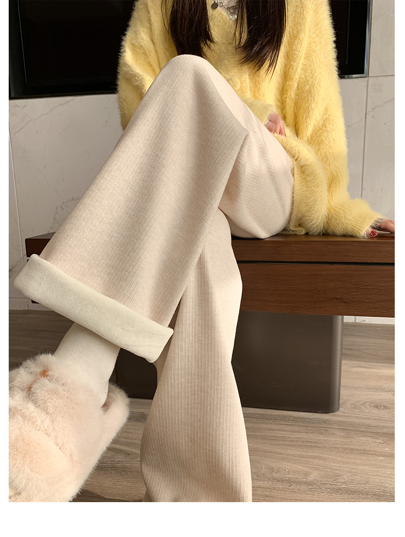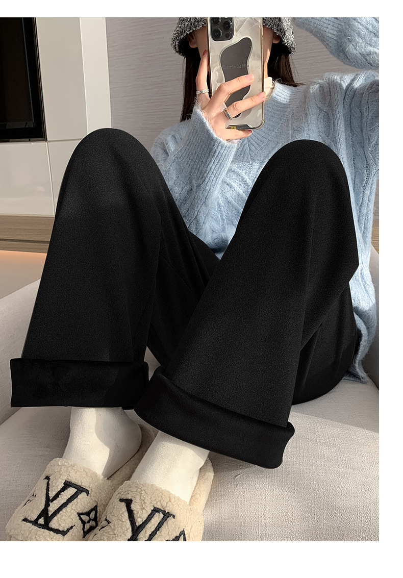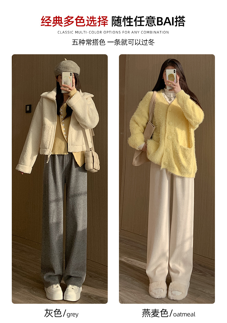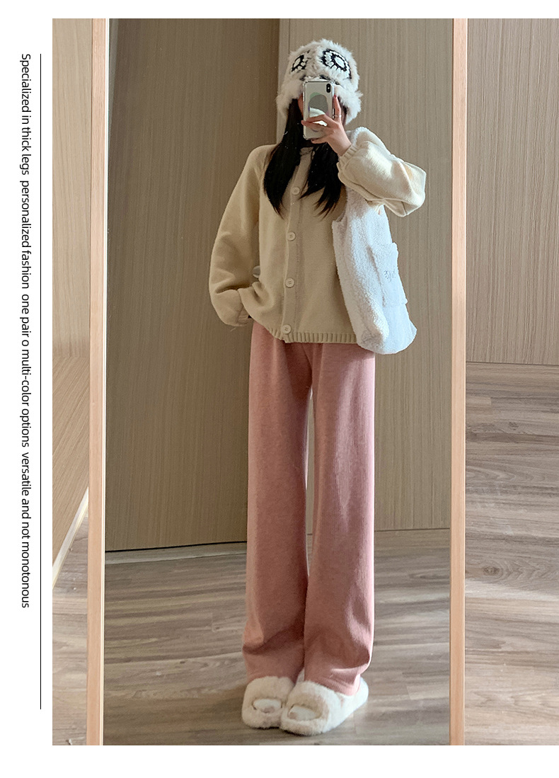 不磨白不起球【仿羊绒加绒阔腿裤】秋冬软糯针织阔腿裤 高腰垂感十足 直筒窄版休闲糯米裤