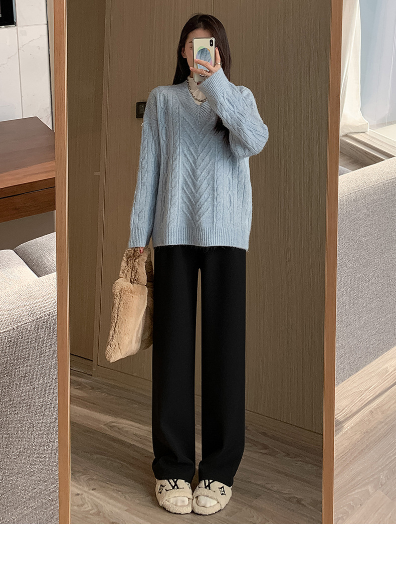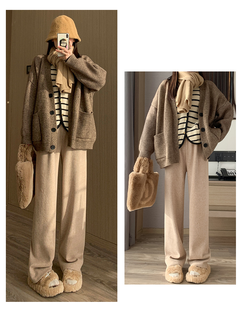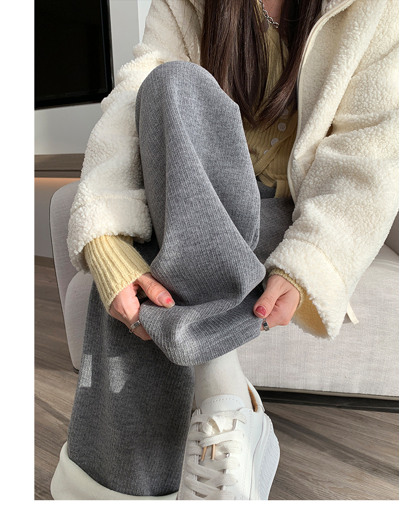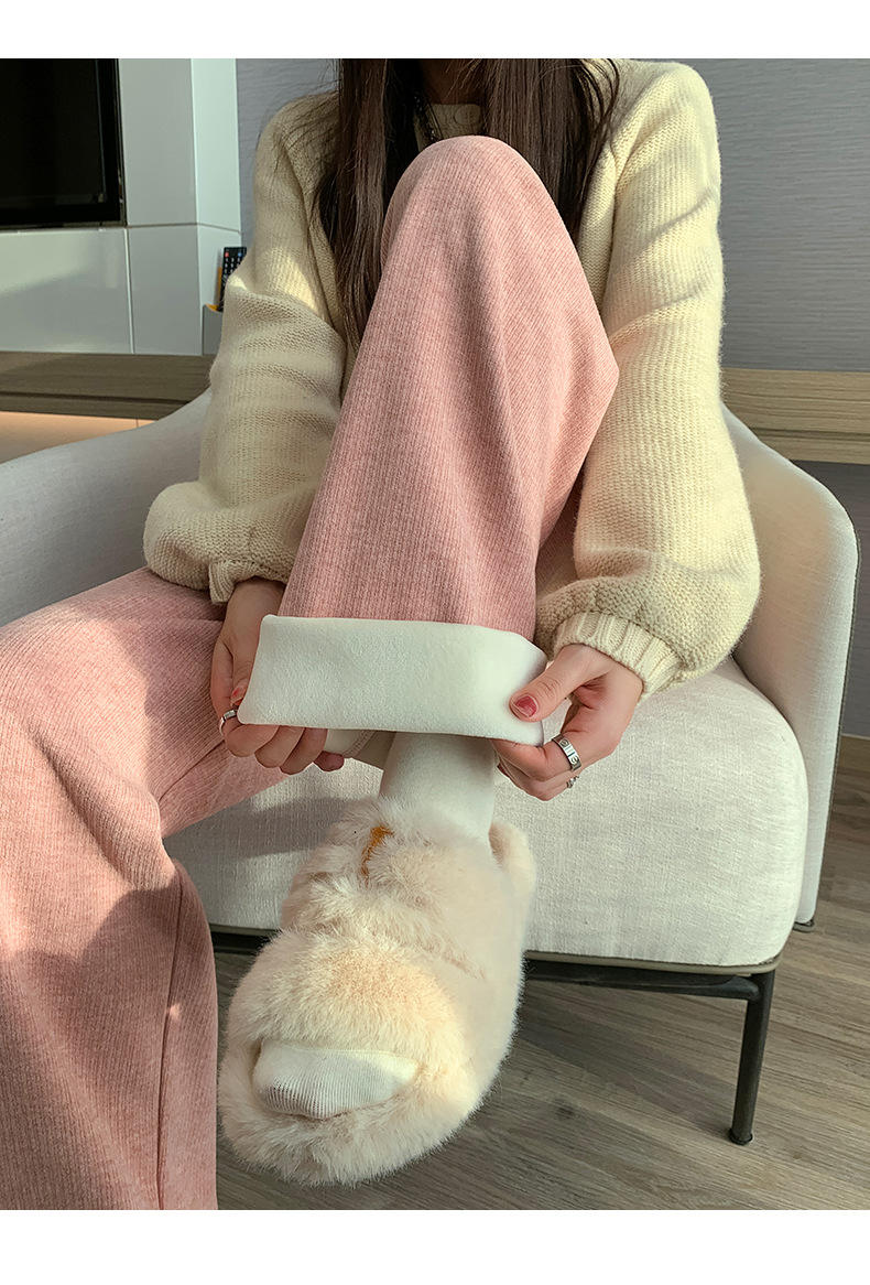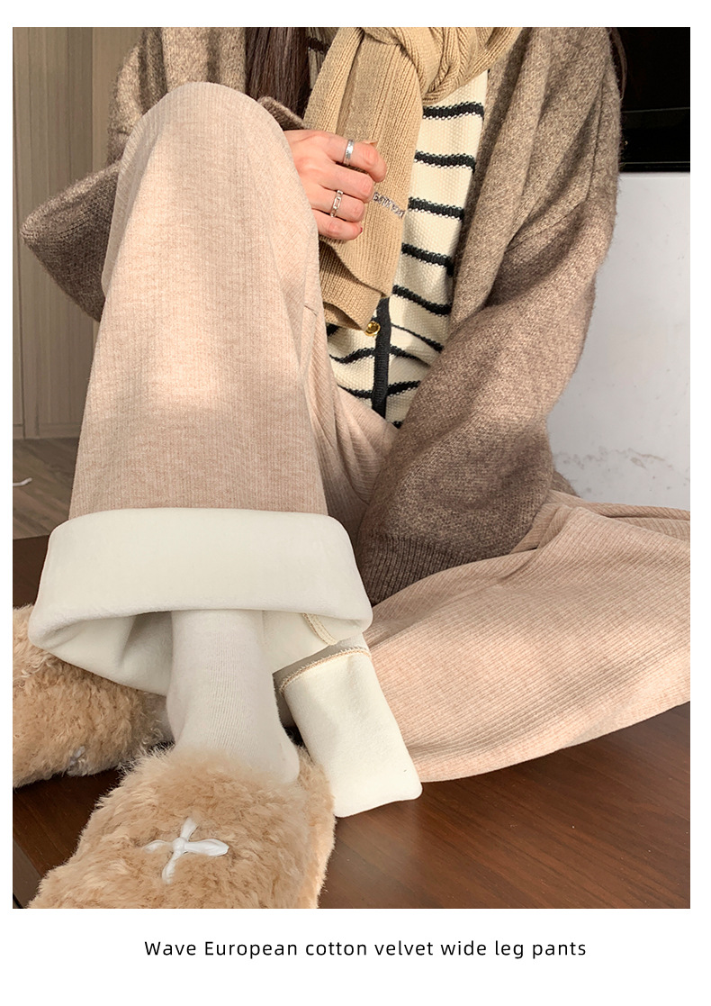 不磨白不起球【仿羊绒加绒阔腿裤】秋冬软糯针织阔腿裤 高腰垂感十足 直筒窄版休闲糯米裤