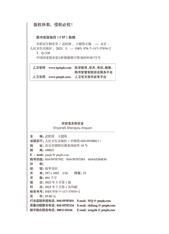 实验室生物安全 武桂珍 王健伟 本书适用于与病原微生物有关的研究 教学 检测 诊断等领域培训使用 9787117379342人民卫生出版社