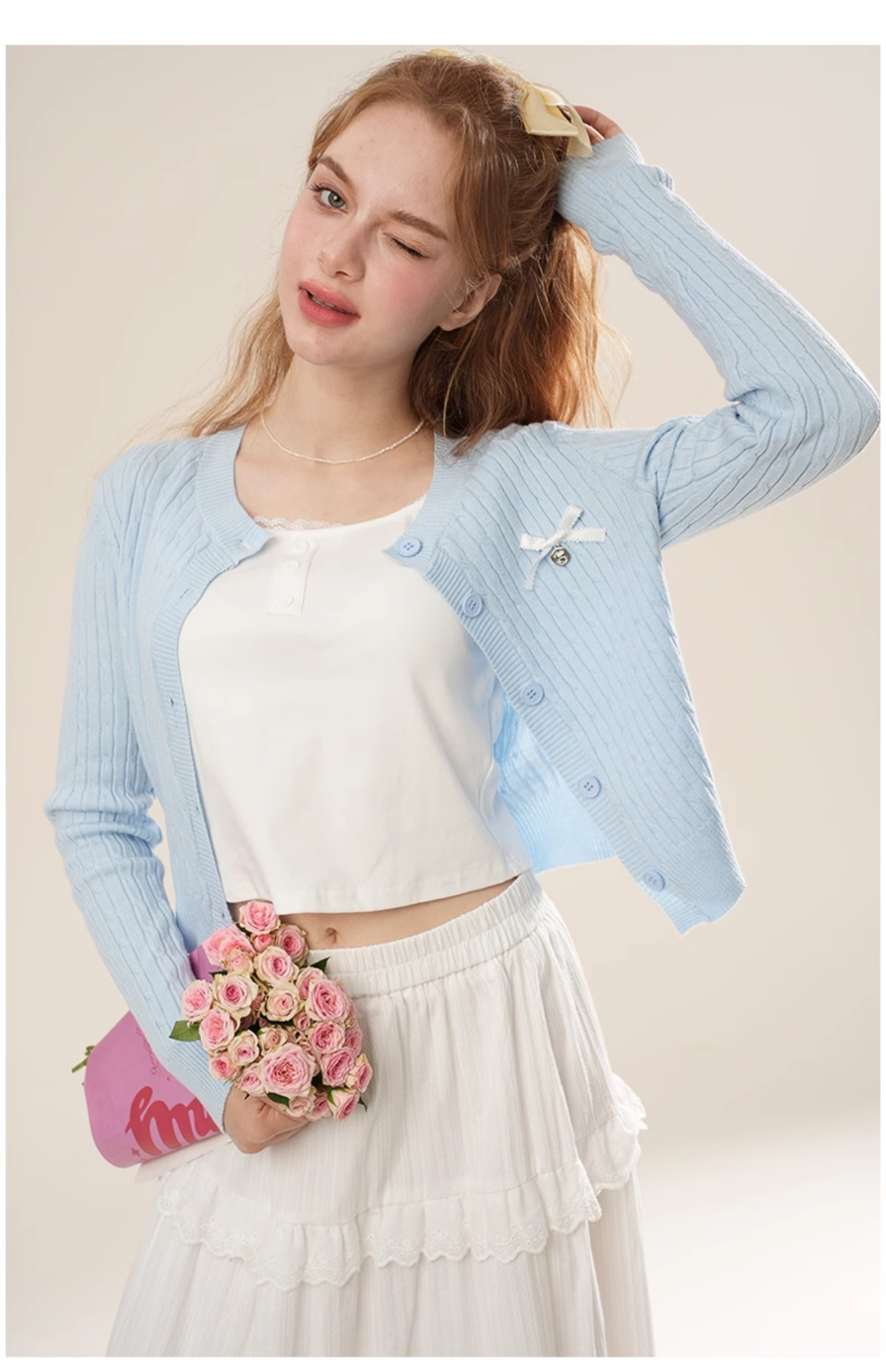女装针织开衫配背心加绣花半裙三件套-7706S5212016