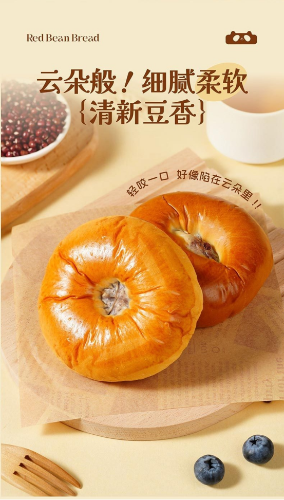咬-口满嘴留香 用的都是好材料 面包体像云朵一样蓬松,撕开能看到拉丝, 红豆馅保留了30%颗粒,咬下去有沙沙的口感, 甜度刚好不齁嗓子,嚼起来又有韧劲又绵软口 零食都合适,独立包装也方便不管当早餐 尝过的朋友都说,吃完还想回购入