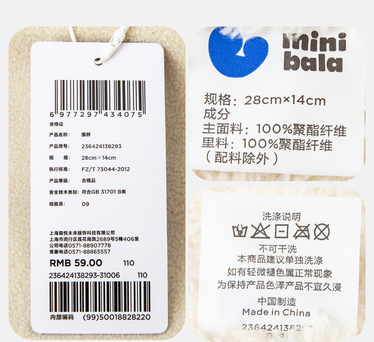 迷你巴拉冬季新款男女童厚实加绒围巾宝宝百搭保暖围脖