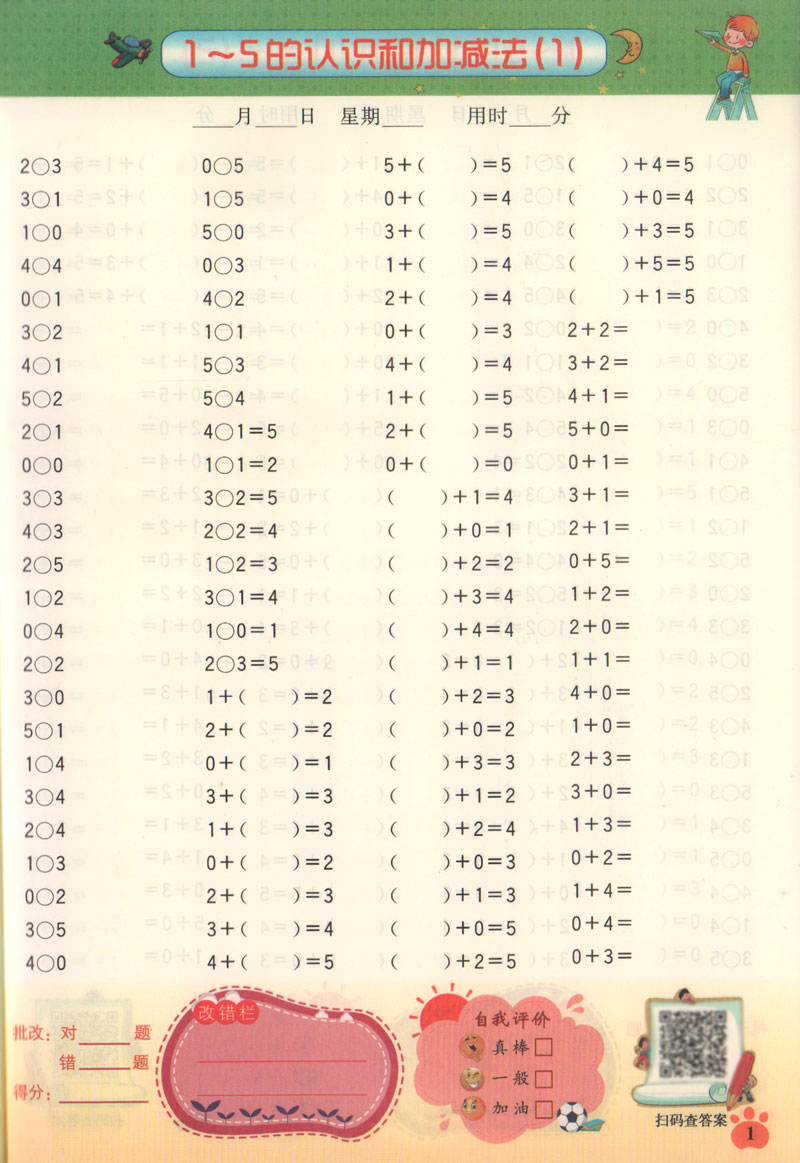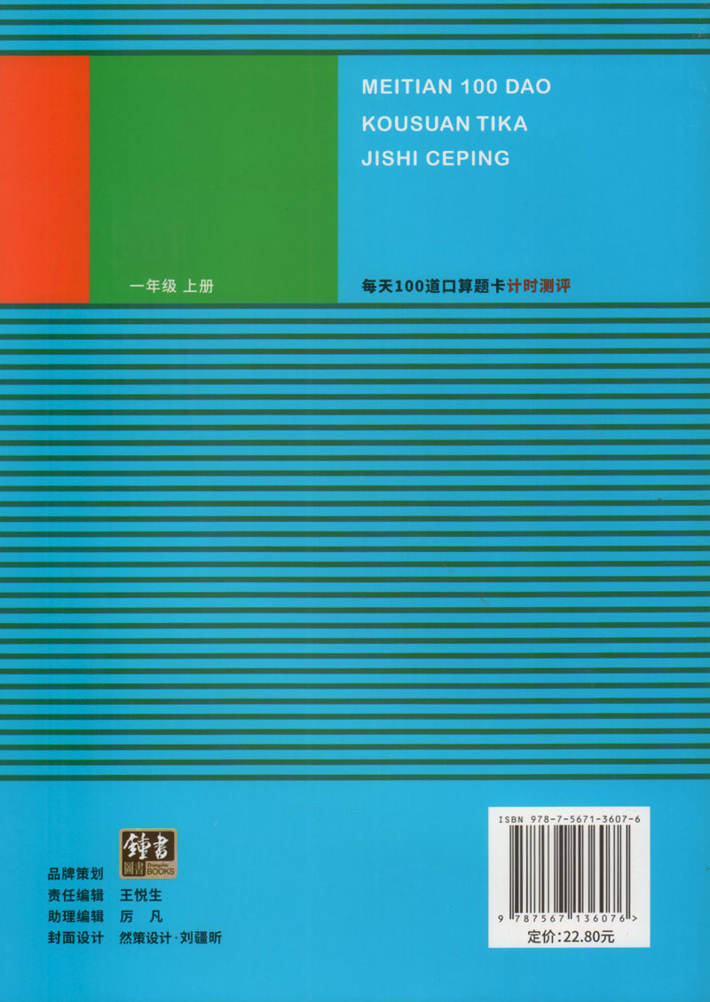 小学一年级口算题卡 全横式每天100道口算题卡计时测评 1年级上/一年级第一学期 人教版全彩版小学数学心算速算加减混合运算尤博士