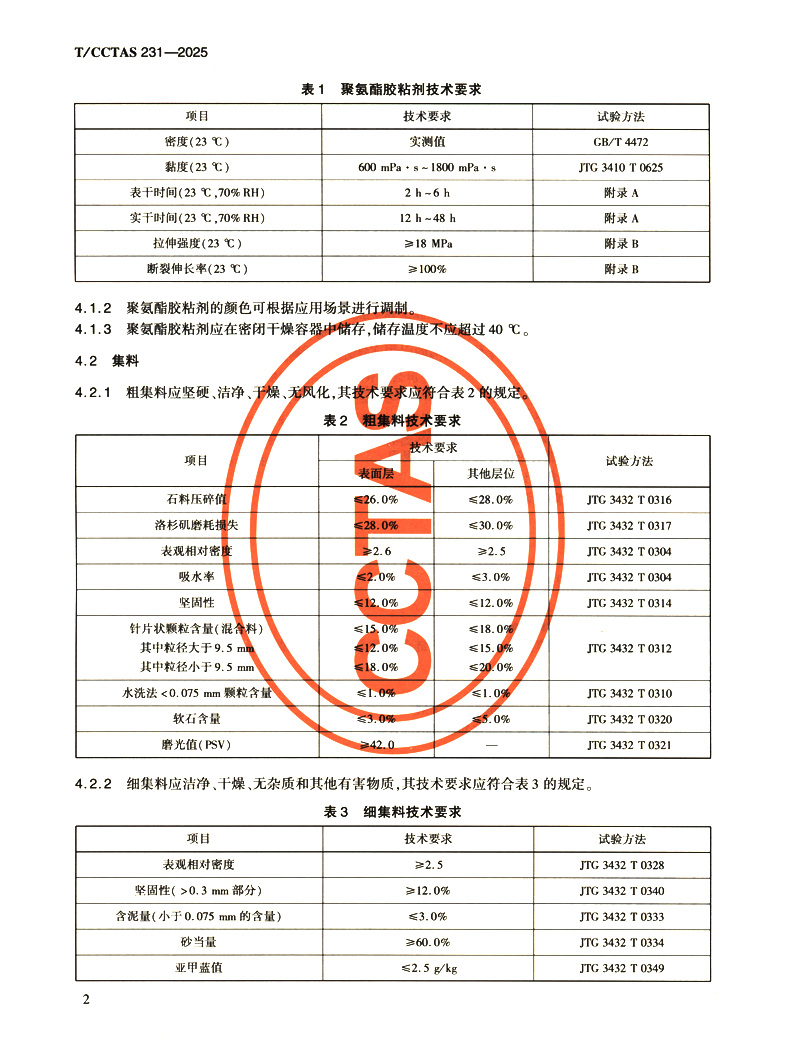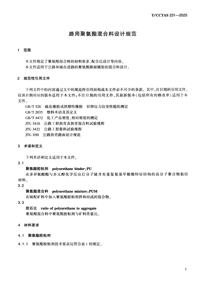 路用聚氨酯混合料设计规范T/CCTAS 231—2025