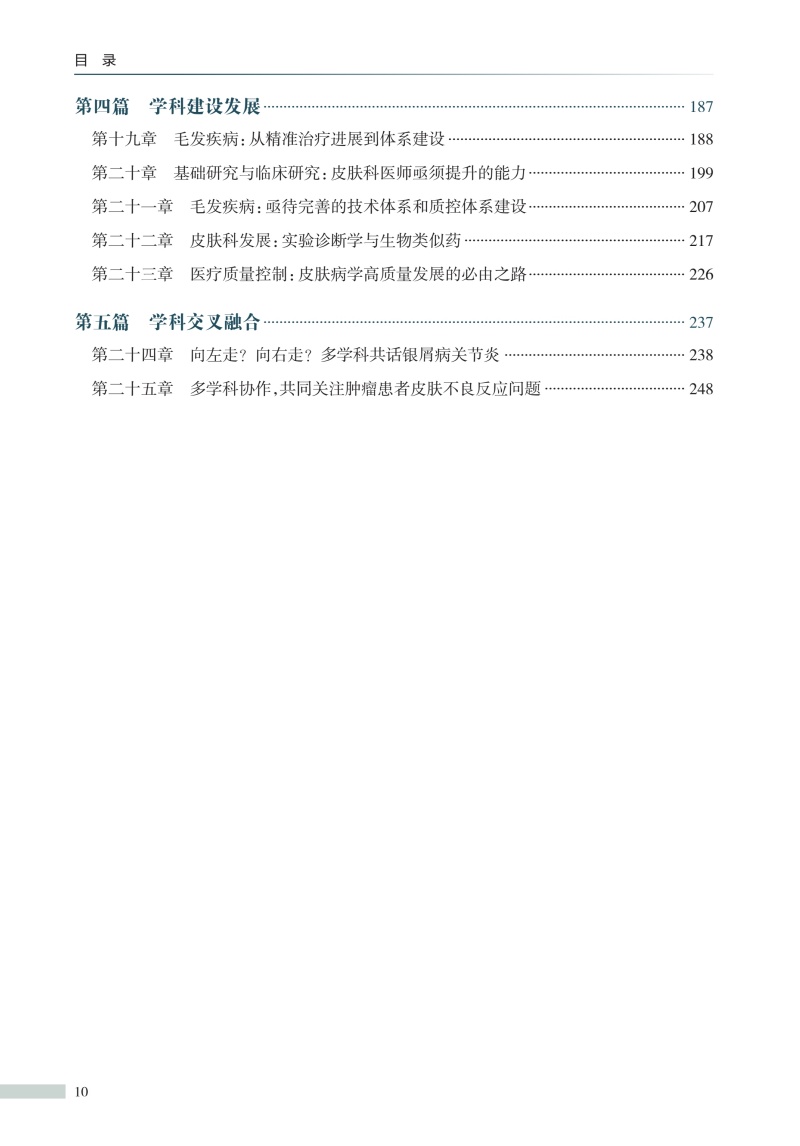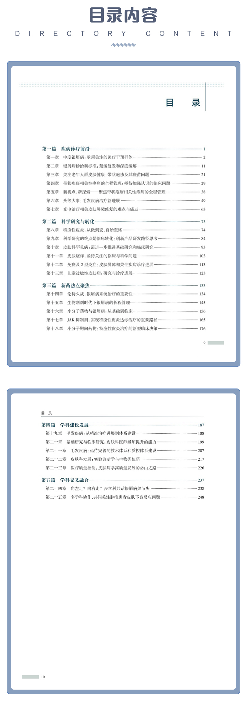 【1】全书分为25章,内容涵盖2021年12月至2023年12月期间“樱花皮肤健康论坛”所涉及的疾病诊疗前沿、科学研究与转化、新药热点聚焦、学科建设发展和学科交叉融合五个大篇,共25章。【2】每个章节包含背景概述、热点聚焦、论坛精粹及专家讨论四个部分,内容涉及参与“樱花皮肤健康论坛” 主讲嘉宾和讨论嘉宾的个人简介及经验观点。【3】本书内容不仅涉及皮肤科,还涉及人工智能、新材料研发等众多领域,收录了各领域专家学者的经验观点,帮助读者开阔思路,打开视野。【4】本书围绕学科相关新技术和新方法,聚焦热点、焦点,为从业人员提供临床及科研经验和思路。【5】皮肤科相关前沿热点为该书主要内容,旨在为众多读者提供快速、全面了解学科进展的途径;该书集合大量皮肤学热点及相关研究,收录众多学术观点和临床经验的总结,议题具有降解性和可探讨性,为读者提供选择科研课题的方向及突破口,具有科研指导价值;该书收录众多医院和专家的宝贵临床经验,对临床医师具有重要的指导意义。