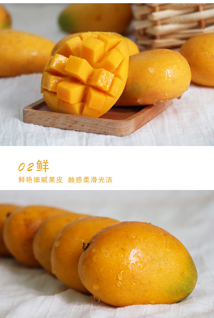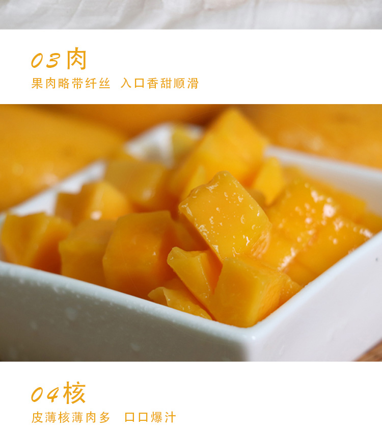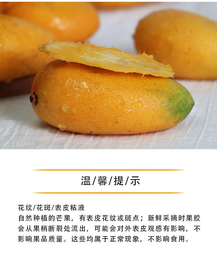 备注:台农芒果属于后熟水果,收到货后看下果子是否微软,表皮发黄,微软即可食用,生硬的需要原箱子完全密封放置温度高的地方3-5天左右,表皮泛黄微软有香气即可食用,切记未熟果子不可放冰箱)