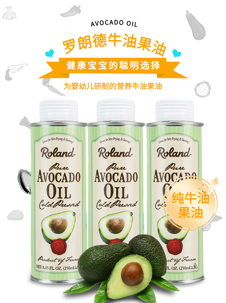 【完税进口】法国原装进口Roland罗朗德初榨婴幼儿营养牛油果油250ML