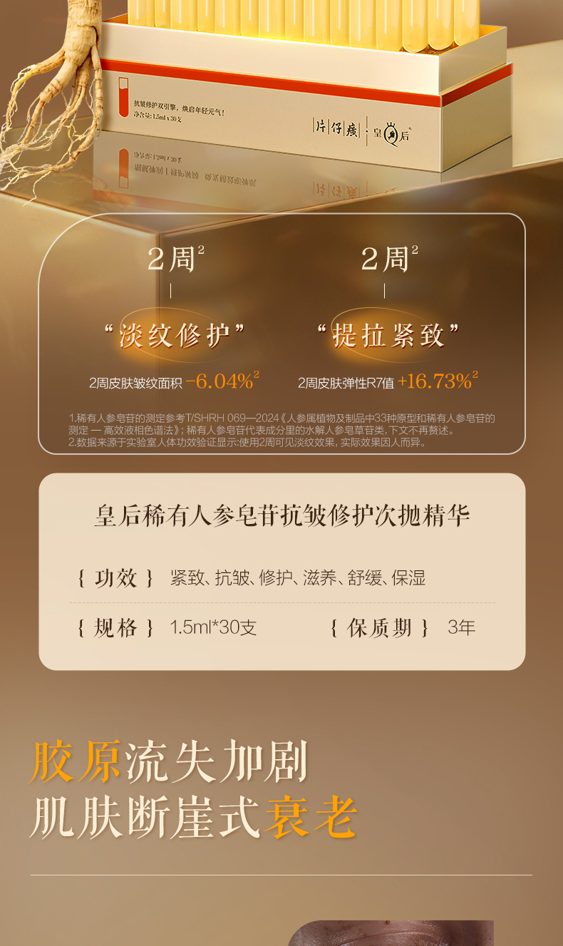 [抗皱紧致]片仔癀皇后稀有人参皂苷抗皱修护次抛精华液