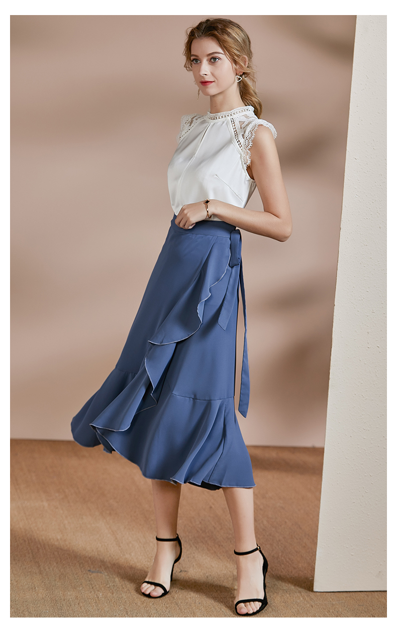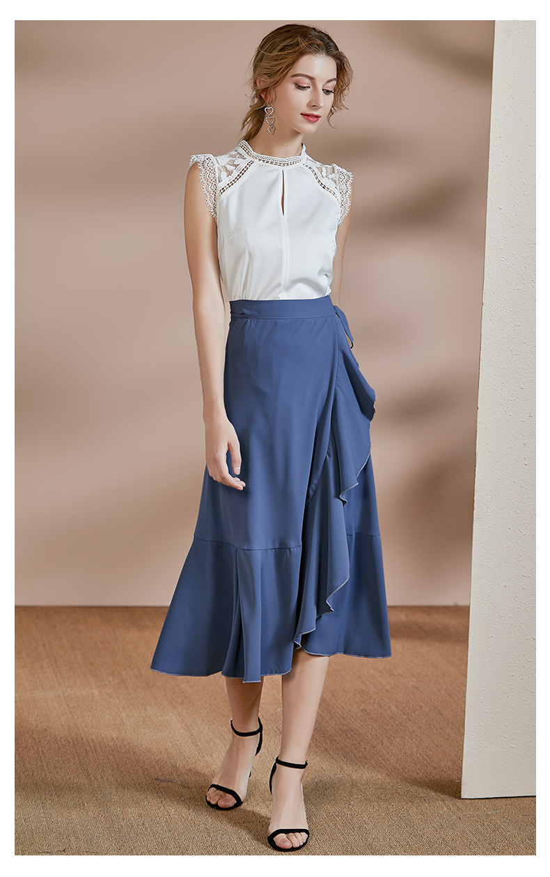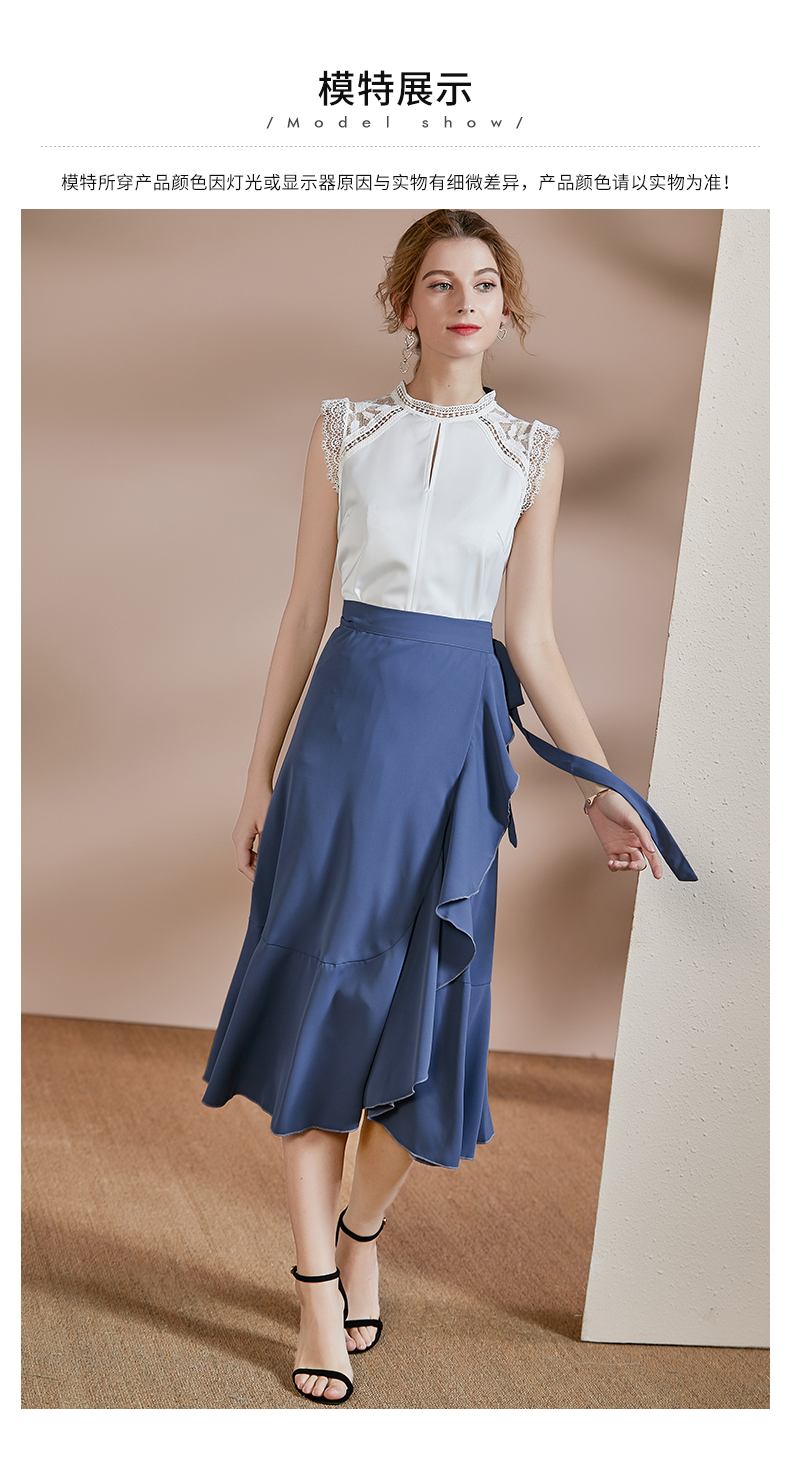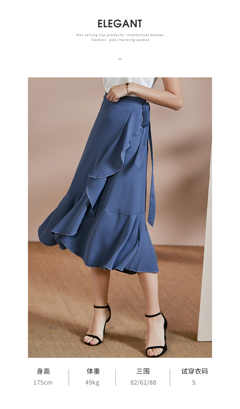 剩S/M 皖儿 夏装新款气质一片式荷叶边系带收腰不对称a字半身裙2471