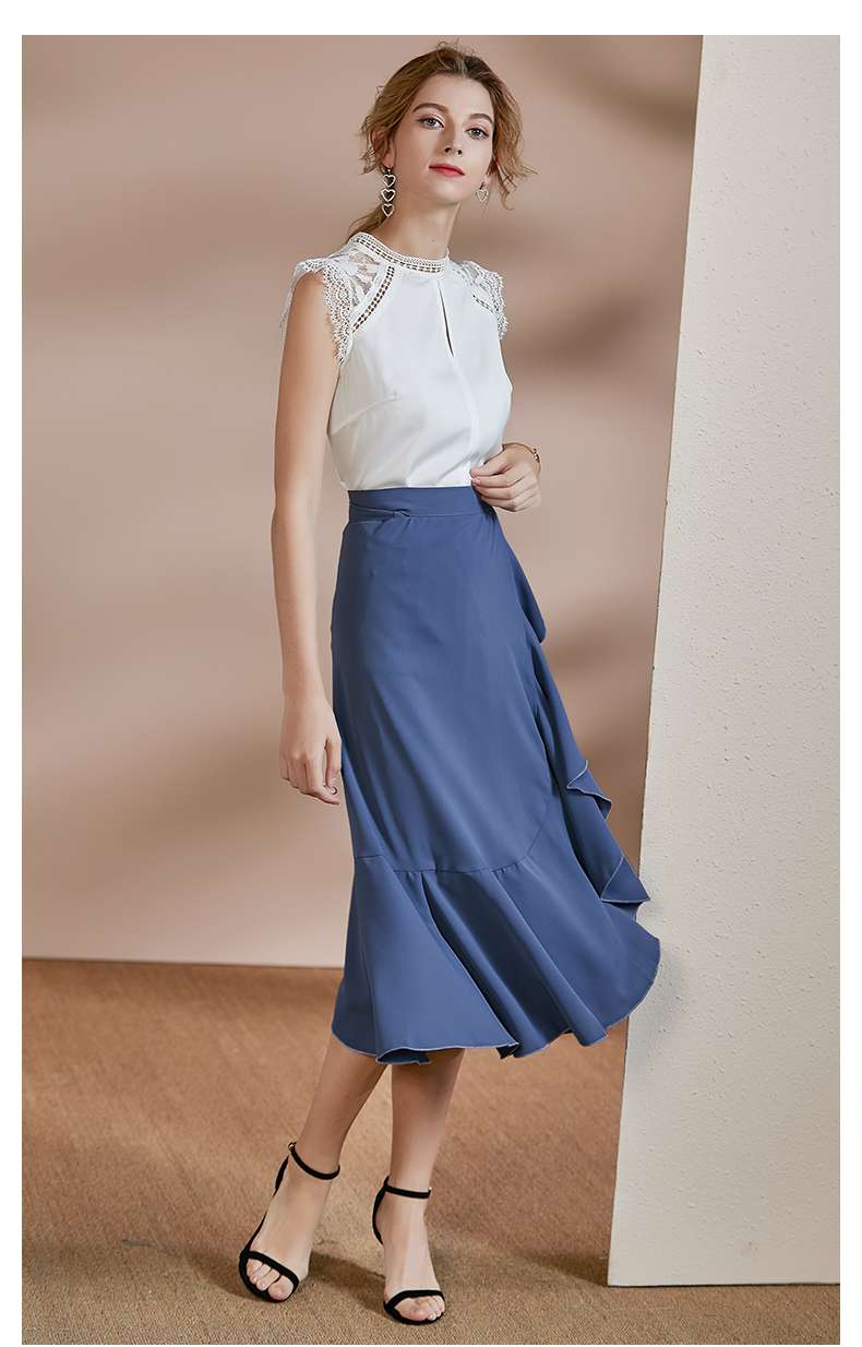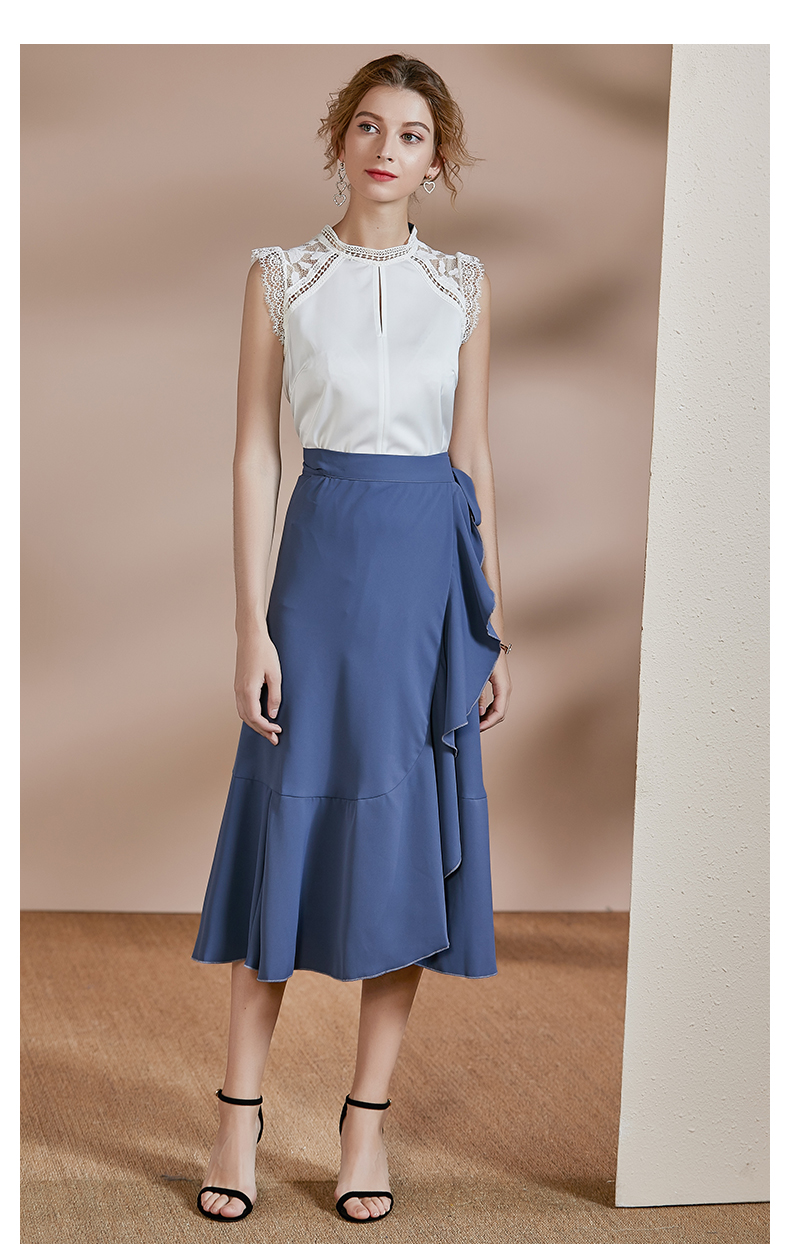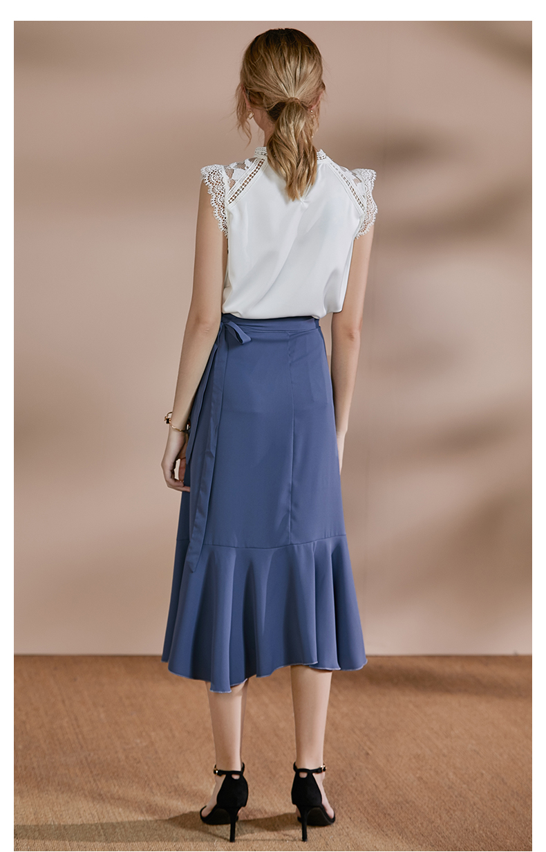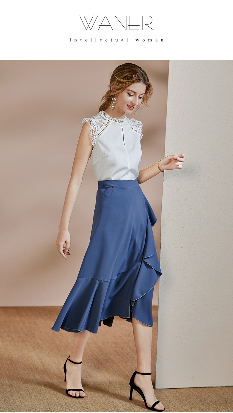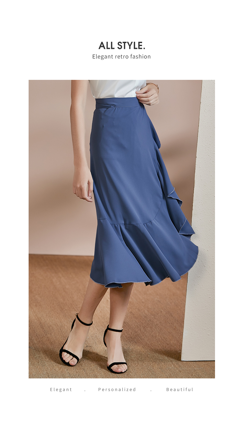 剩S/M 皖儿 夏装新款气质一片式荷叶边系带收腰不对称a字半身裙2471