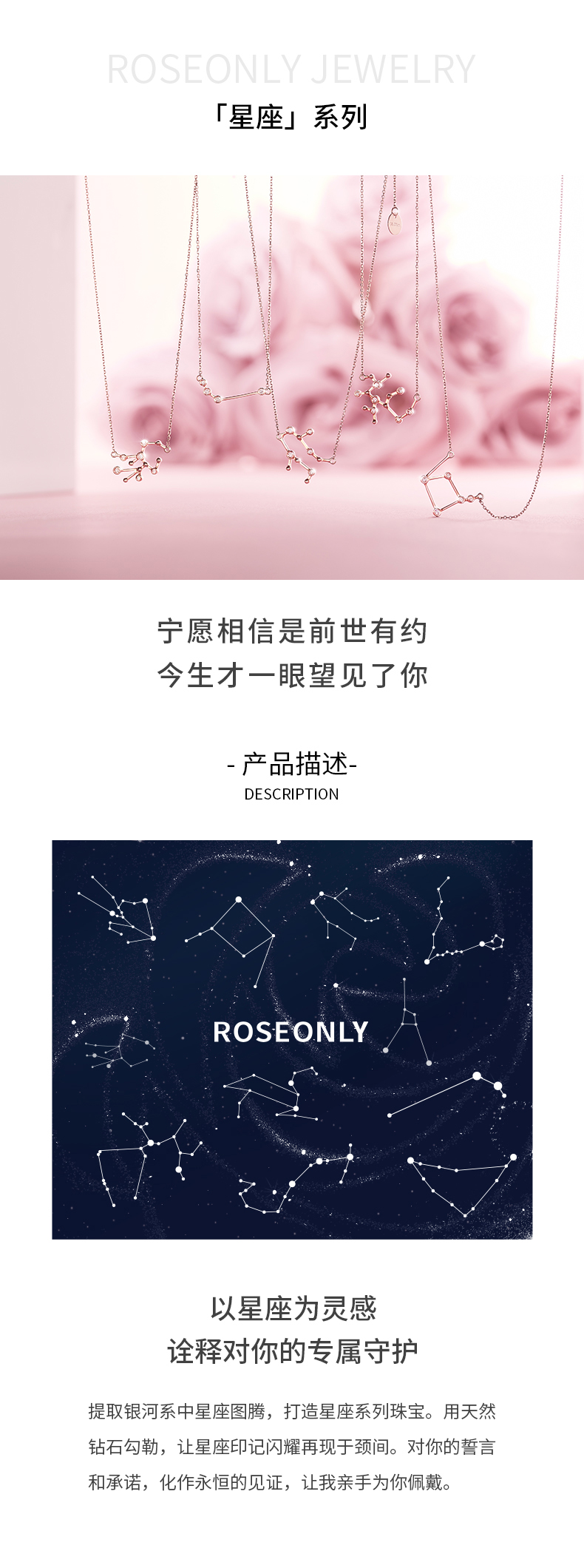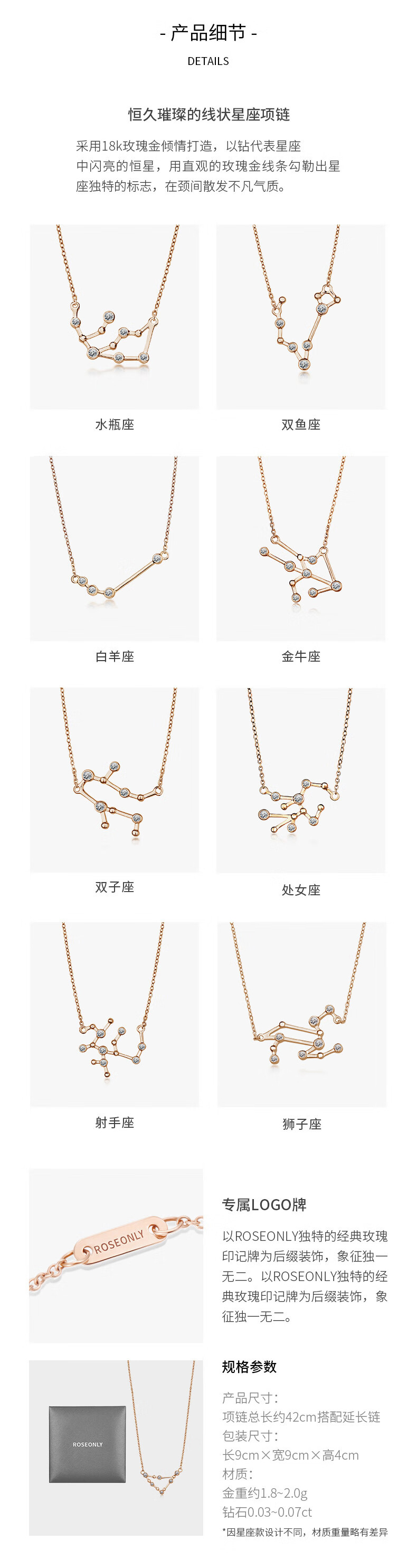 ROSEONLY 玫瑰珠宝-星座经典 线性项链 18K玫瑰金