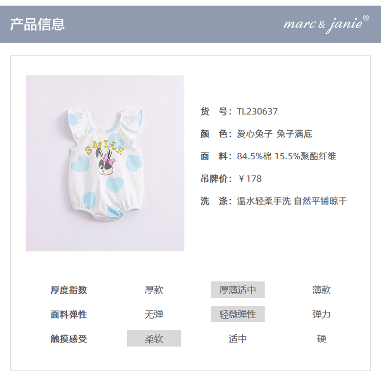 【凉感抗菌】马克珍妮夏装新款 女宝宝吊带连体衣 婴儿哈衣230637