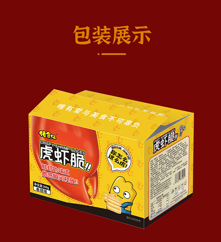佬食仁虎虾脆整箱鲜虾片膨化食品非油炸健康零食儿童怀旧饼干薯片
