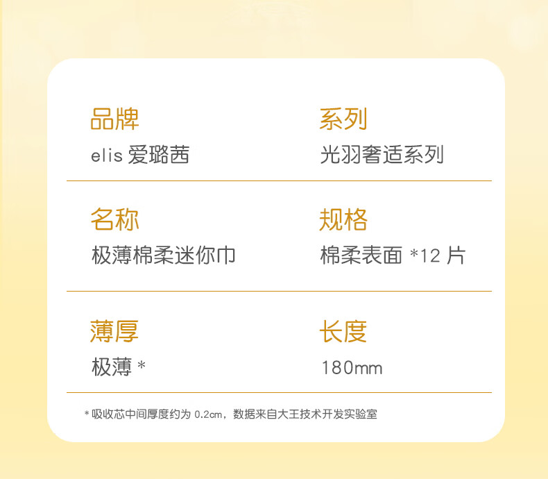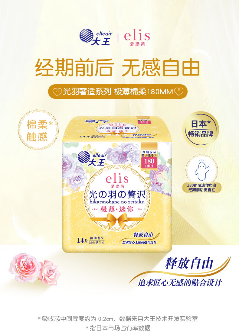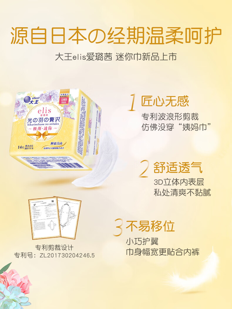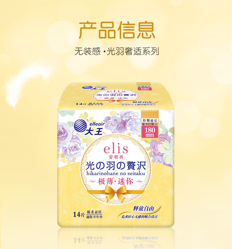 大王爱璐茜光羽极薄棉柔180迷你卫生巾14片