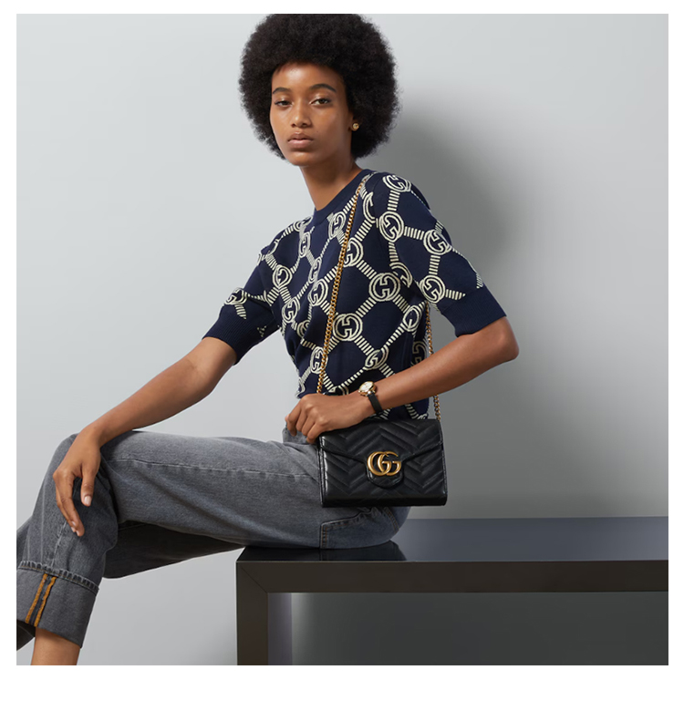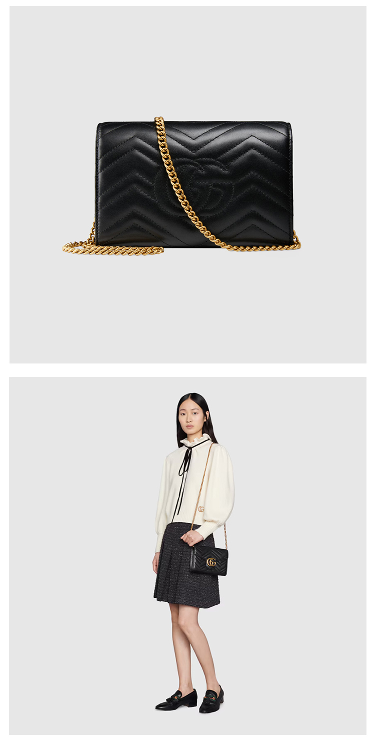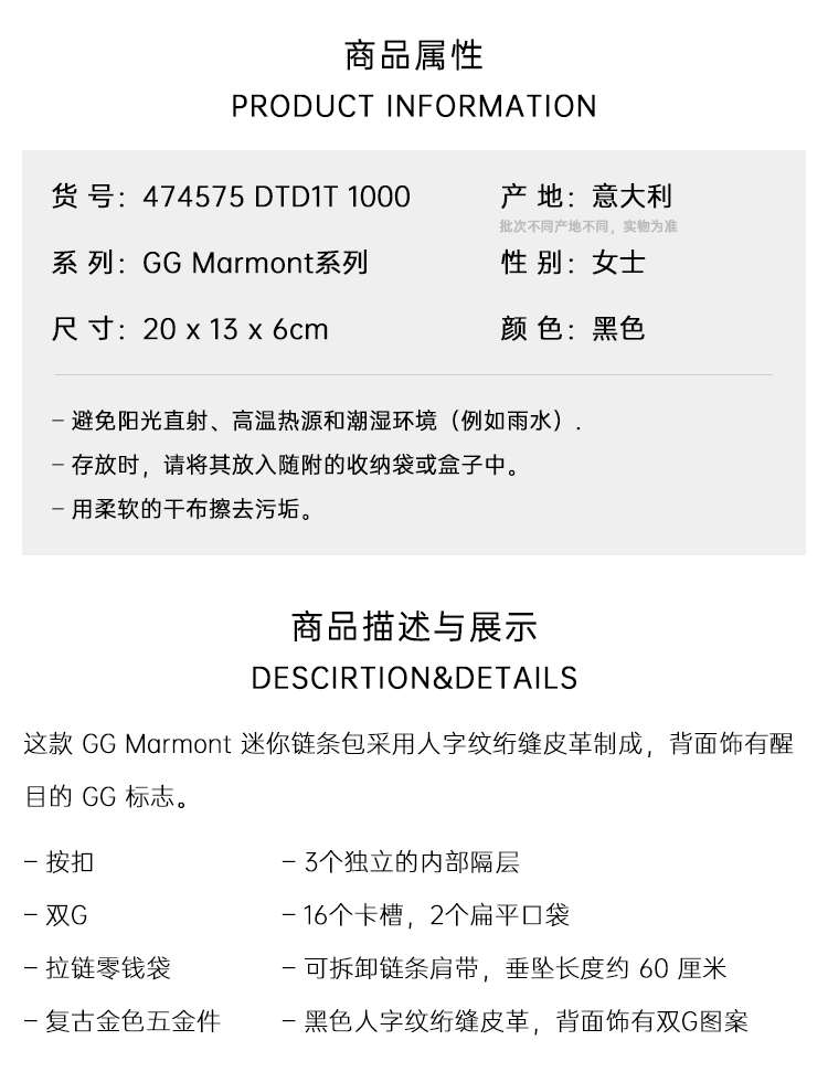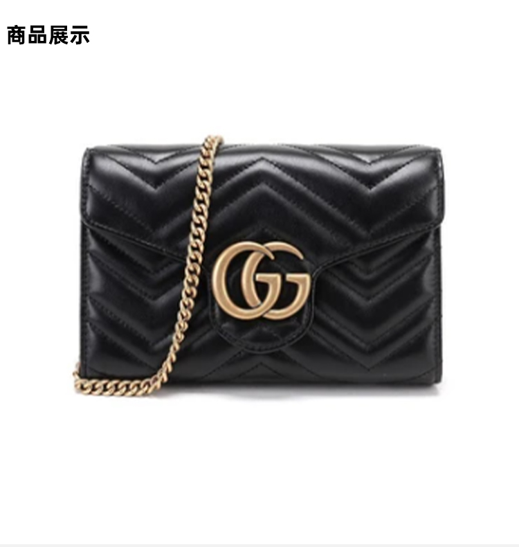【三】GUCCI 古驰 女士 GG Marmont系列 绗缝迷你斜挎单肩包 黑色 474575 DTD1T 1000