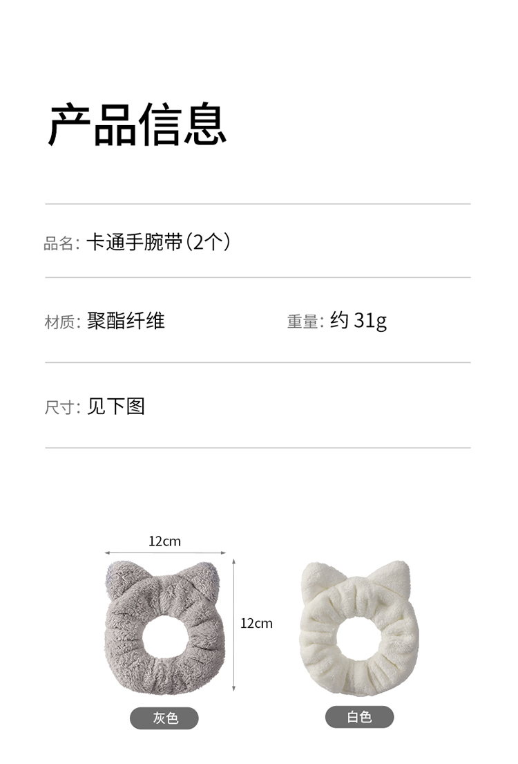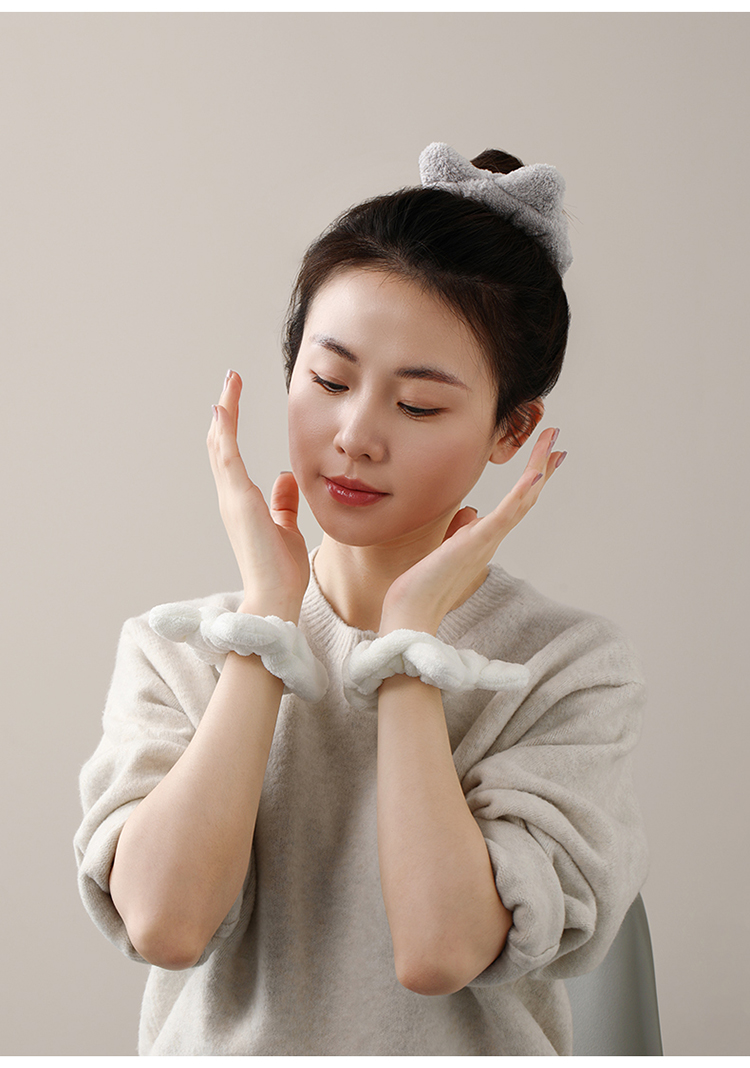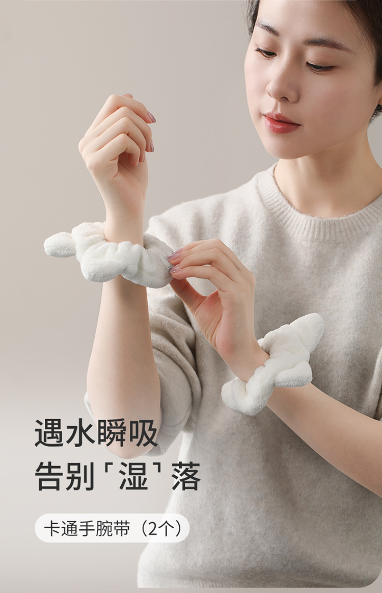 FaSoLa洗脸手腕带防滴水防湿袖神器卡通洗漱毛绒发圈束发带