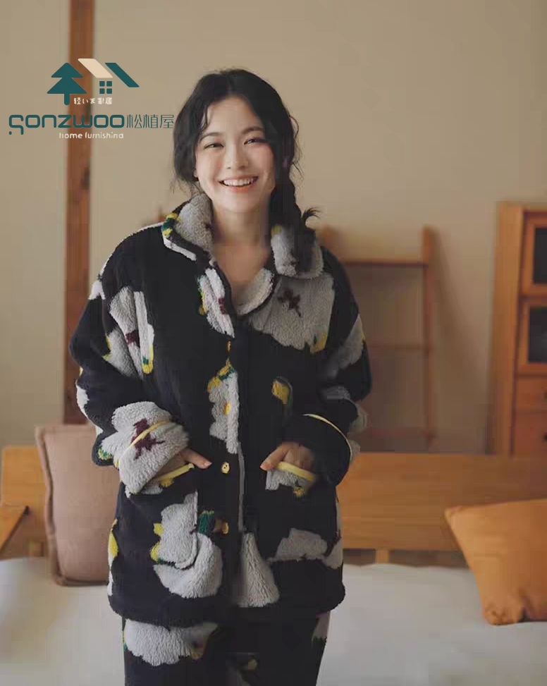 松植屋冬季女款《相融》珊瑚绒加厚长袖睡衣家居服套装