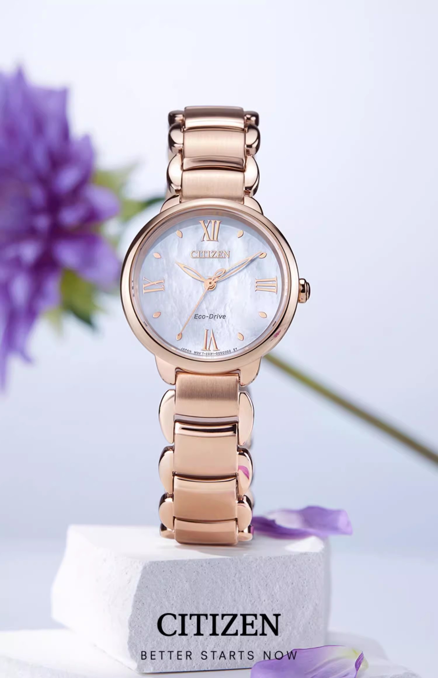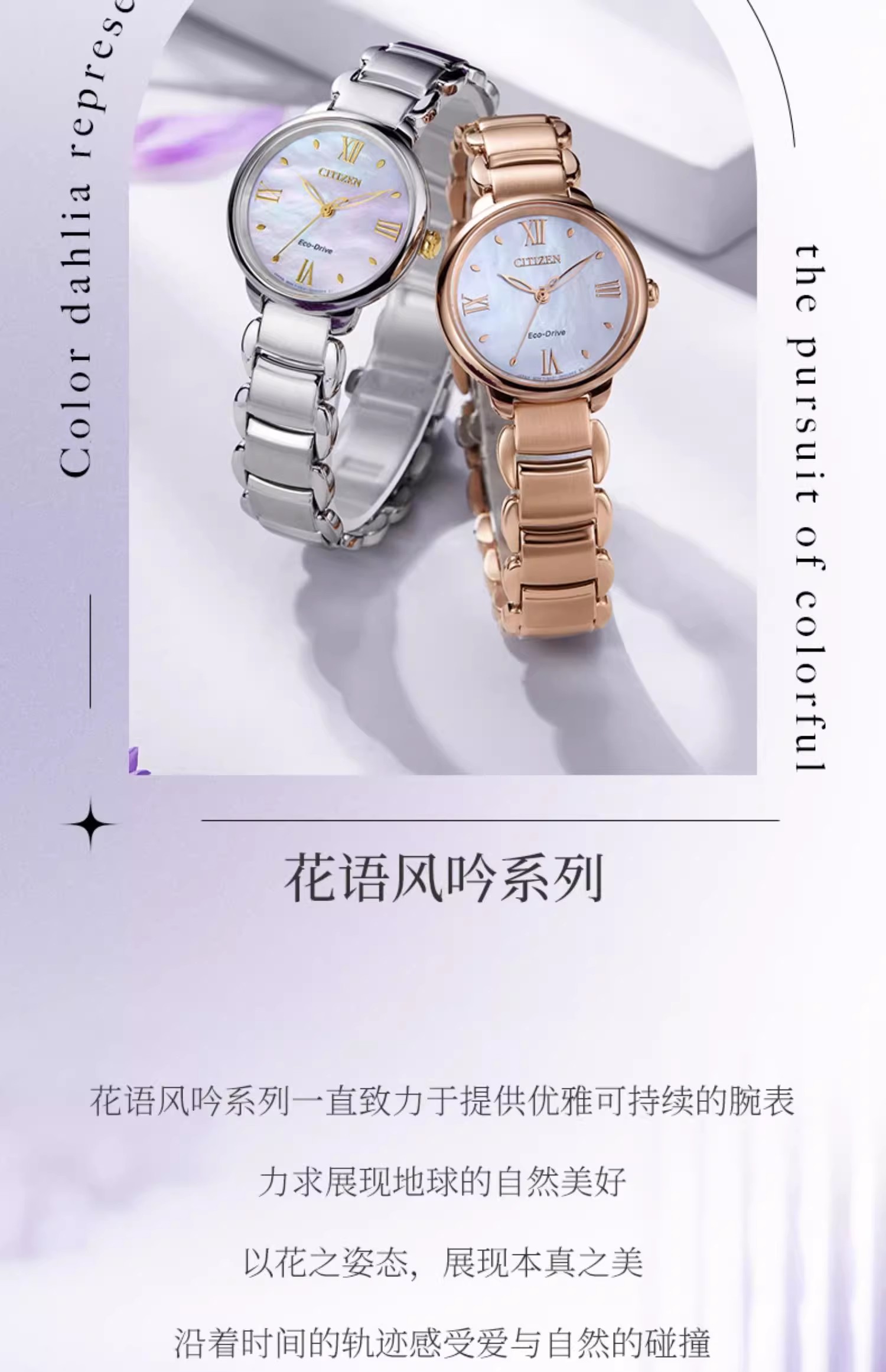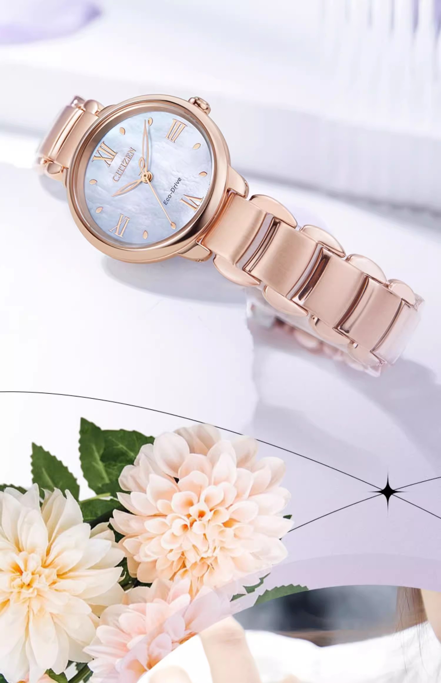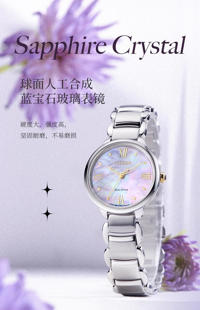 西铁城/CITIZEN光动能花语风吟贝母表盘时尚钢带女士手表EM0928-84D