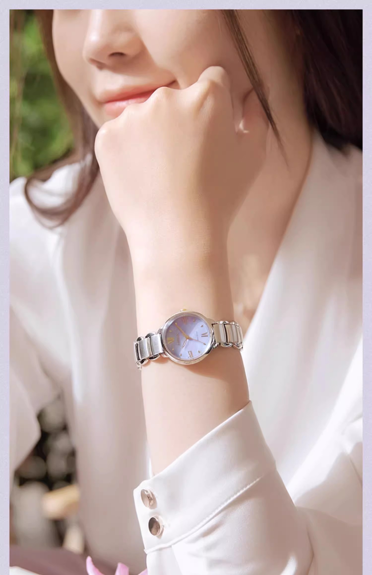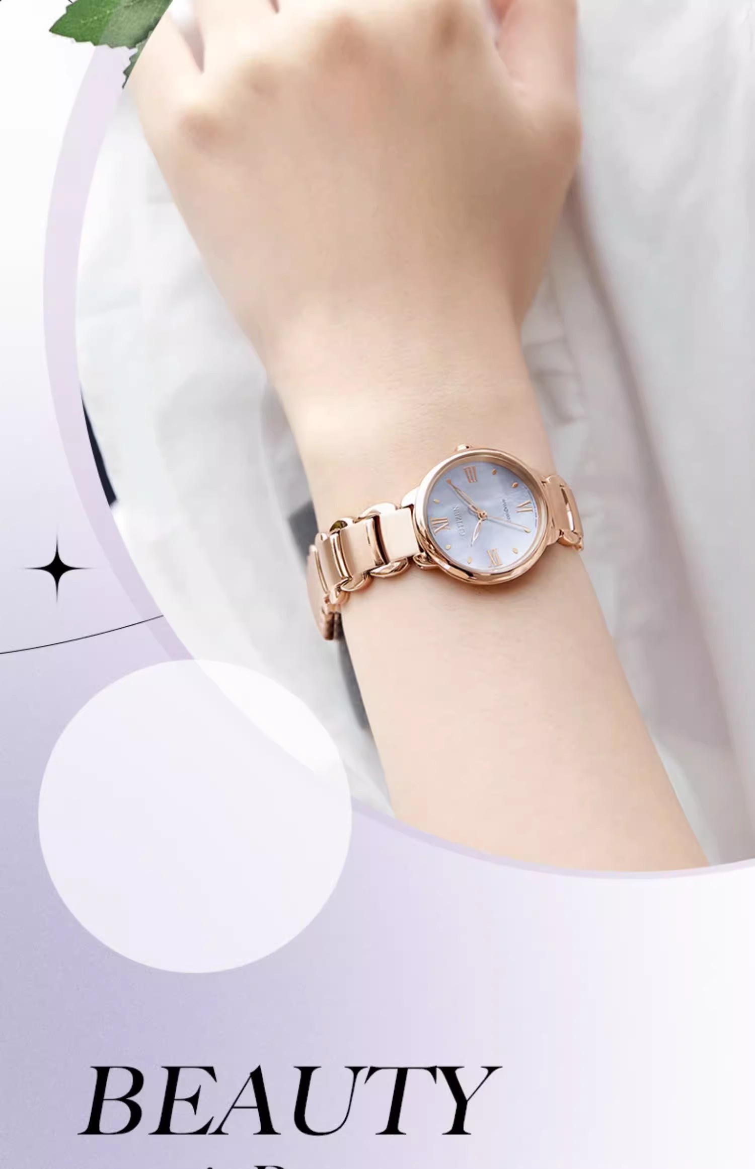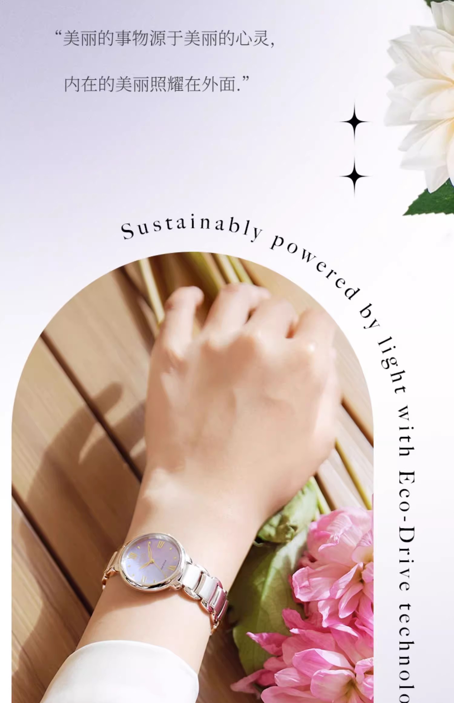 西铁城/CITIZEN光动能花语风吟贝母表盘时尚钢带女士手表EM0928-84D