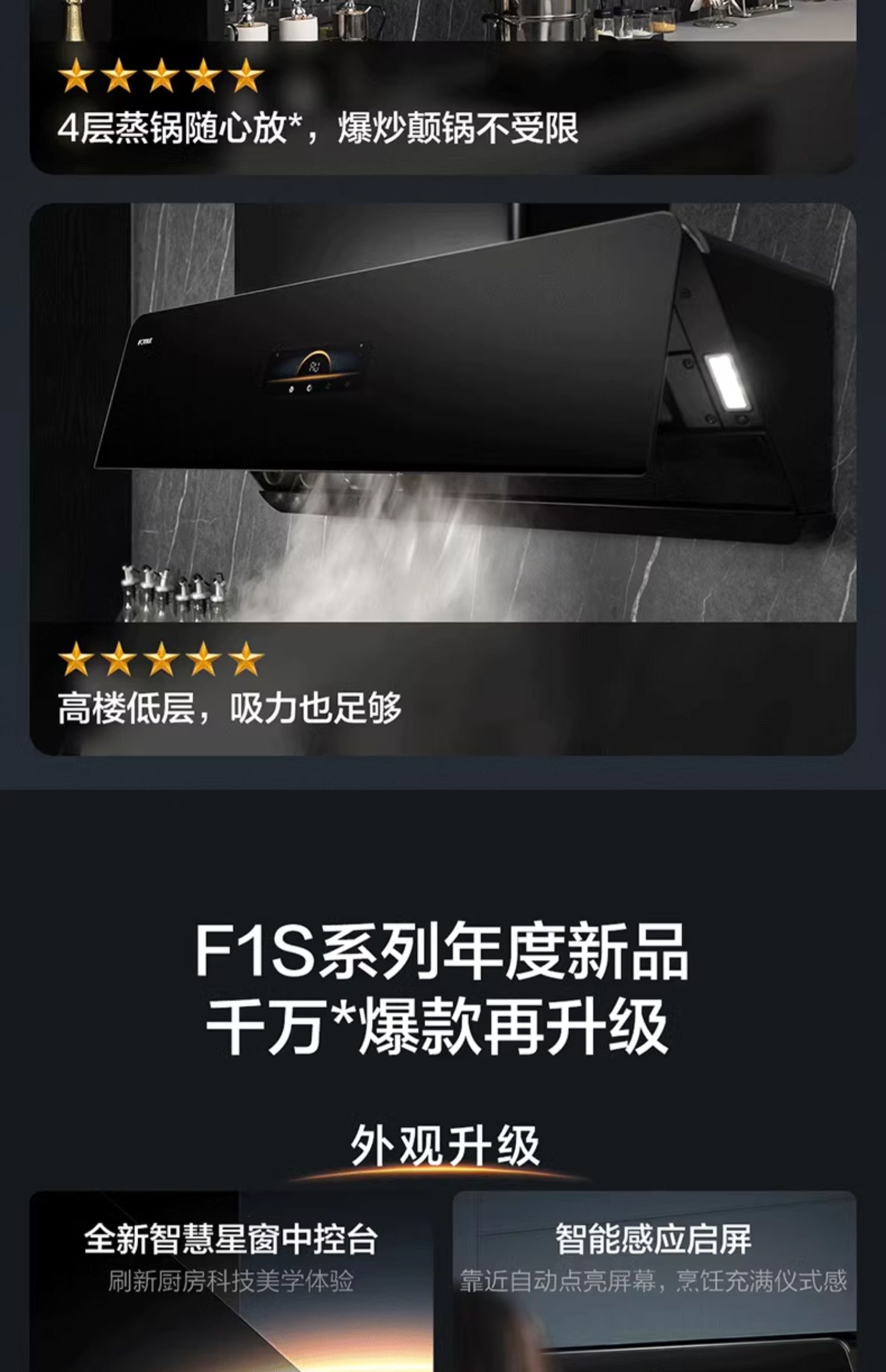 方太官方直营店F1S变频排抽油烟机侧吸大厨房家用吸力