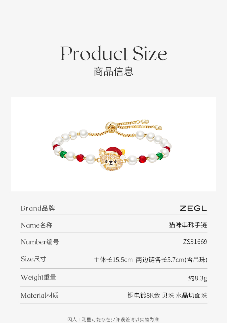 ZEGL猫咪彩色串珠手链女2023年新款轻奢小众精致闺蜜手饰品多巴胺穿搭饰品手饰