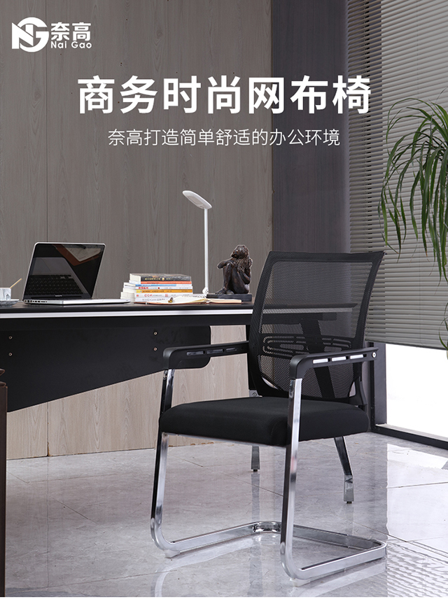 奈高办公椅职员电脑椅会议椅子透气网布椅棋牌室麻将椅简约 弓形椅