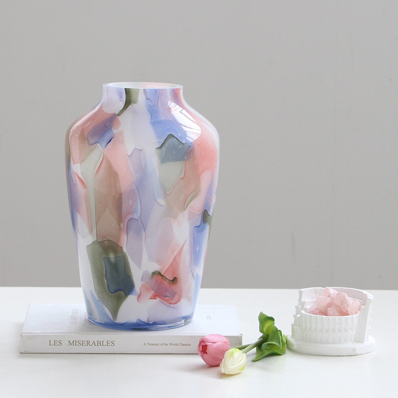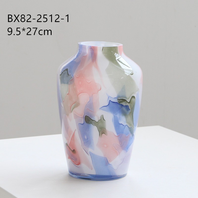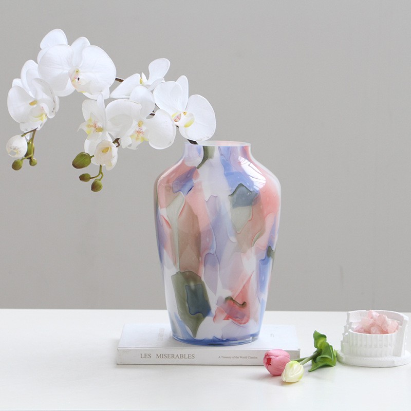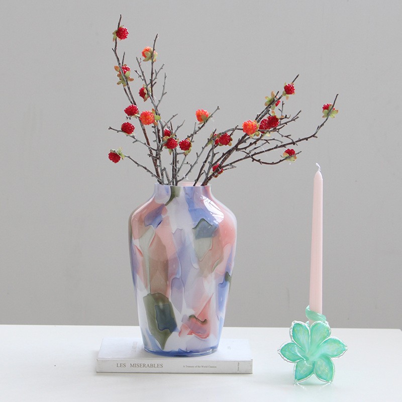 古典水彩艺术玻璃花瓶轻奢高级感法式琉璃水养插鲜花客厅装饰摆件