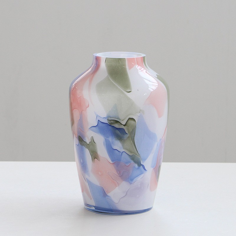 高端流体彩色水墨大肚玻璃花瓶摆件客厅电视柜餐桌水养插花装饰品
