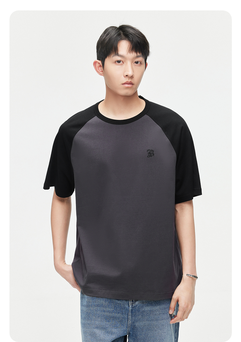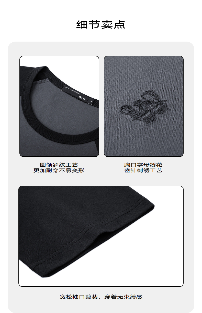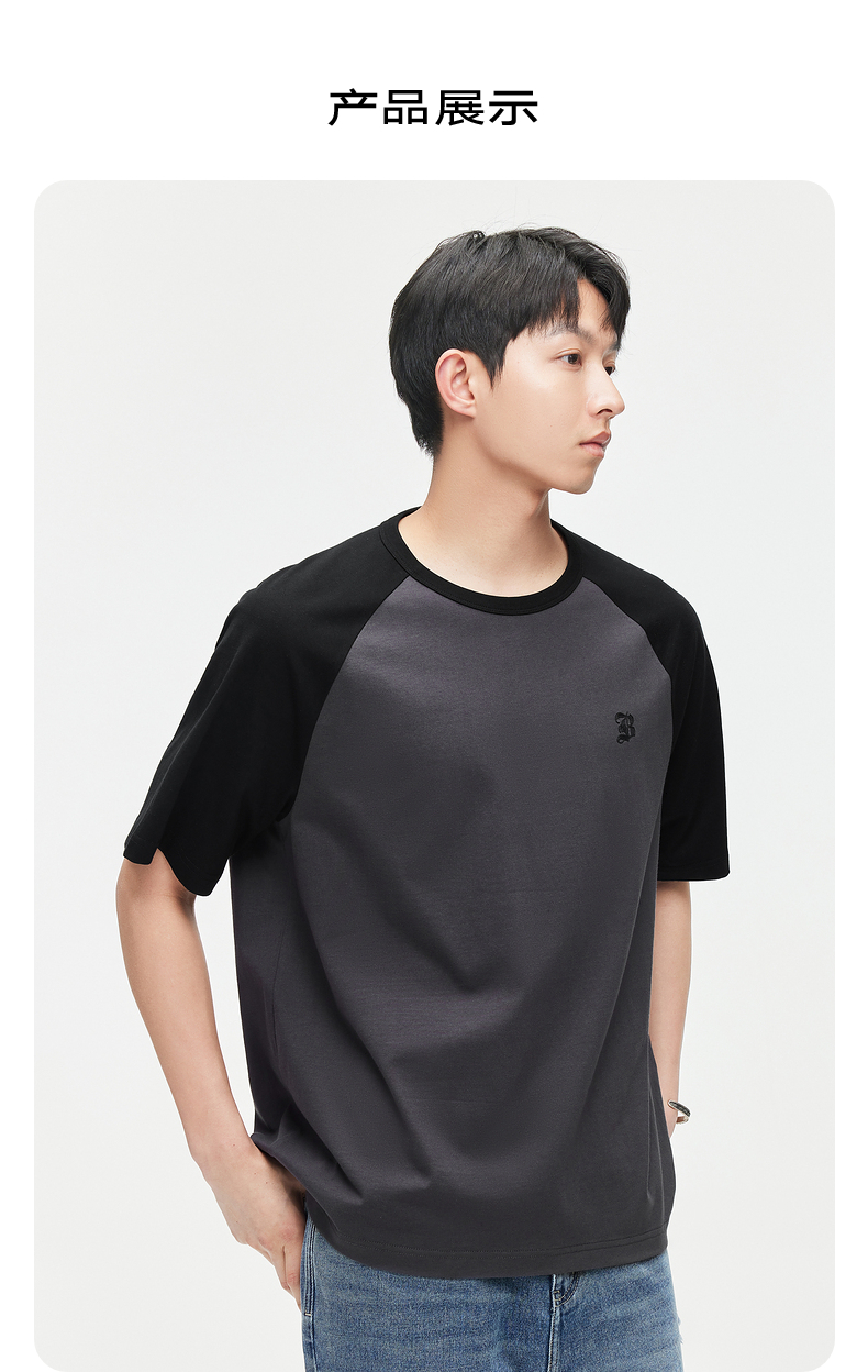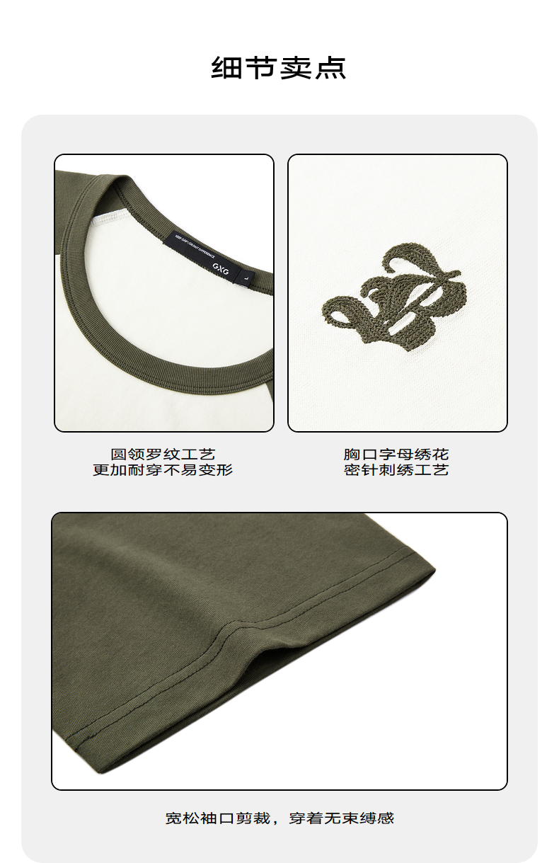 GXG男装 24夏季潮流学院风撞色拼接情侣宽松圆领短袖t恤男