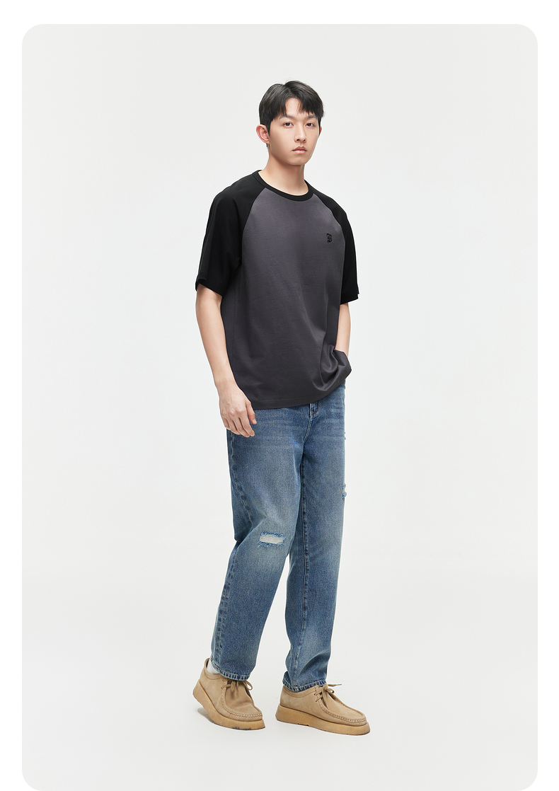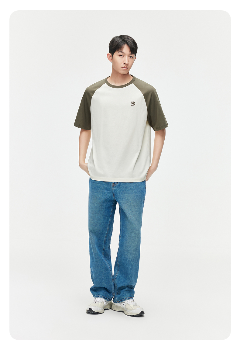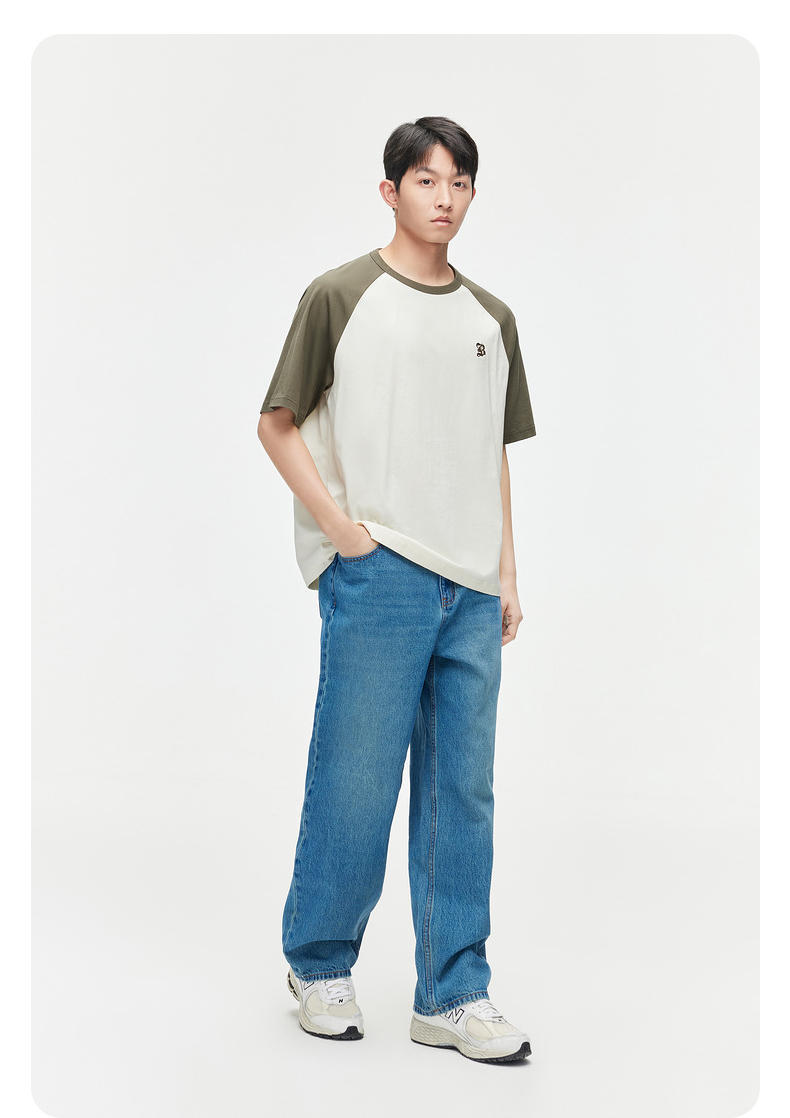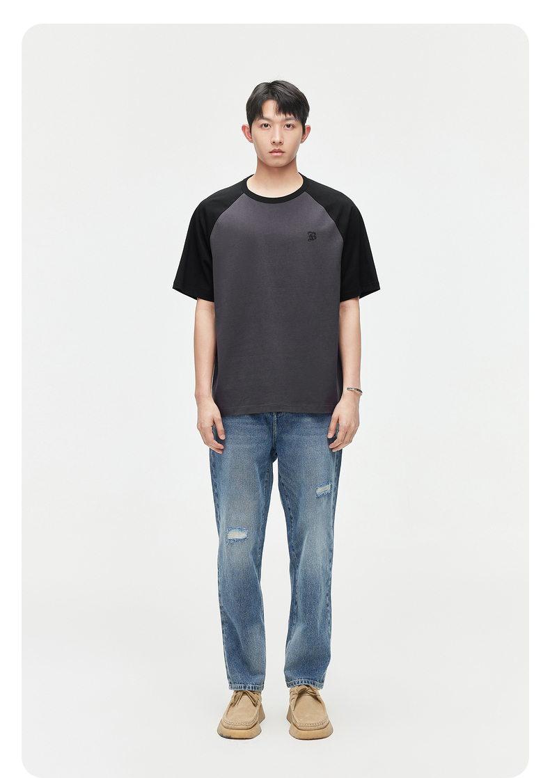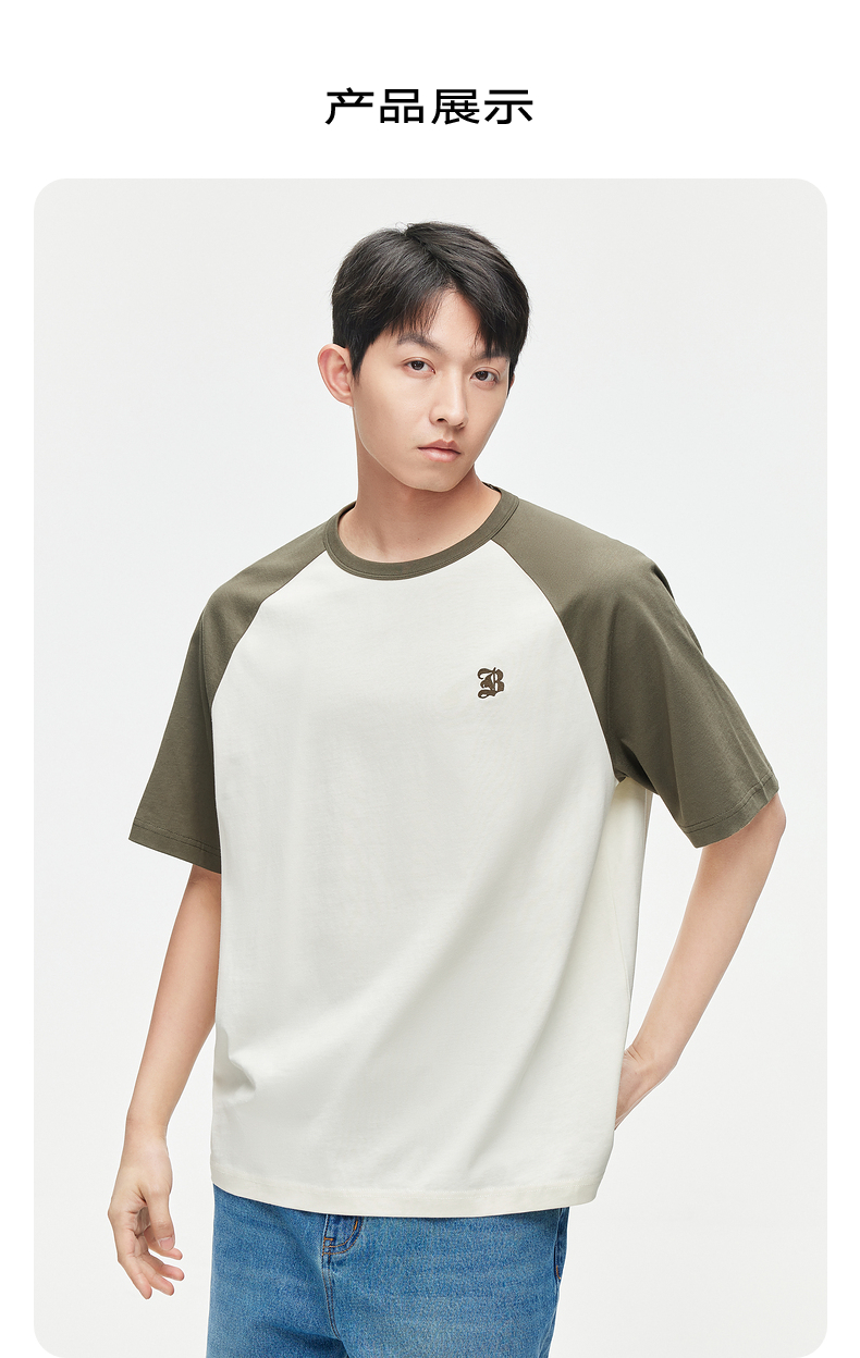 GXG男装 24夏季潮流学院风撞色拼接情侣宽松圆领短袖t恤男