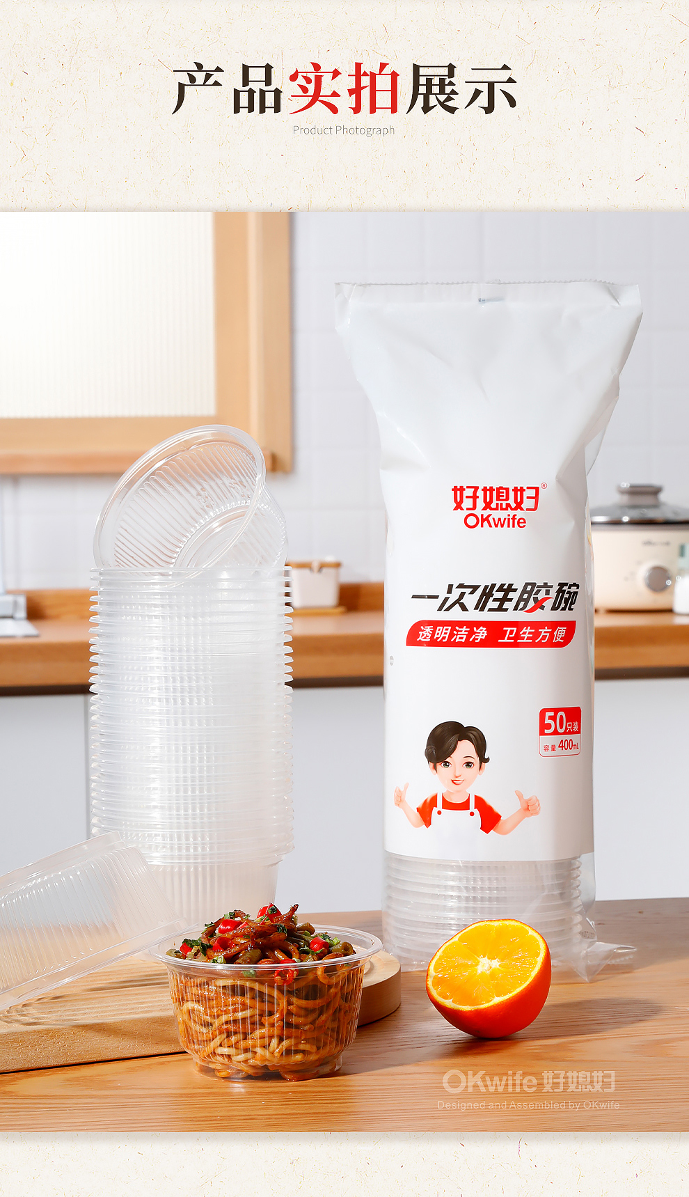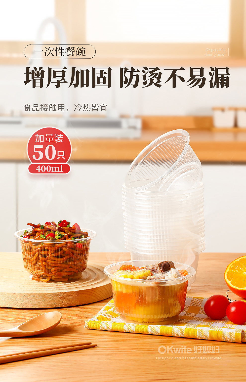 好媳妇一次性汤碗家用打包盒环保圆透明加厚饭盒食品级胶碗
