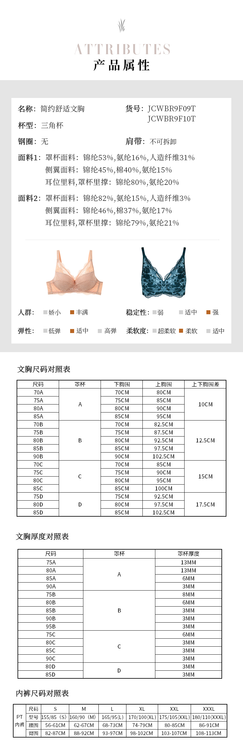 1、文胸上的吊牌和水洗标完好,无试穿痕迹