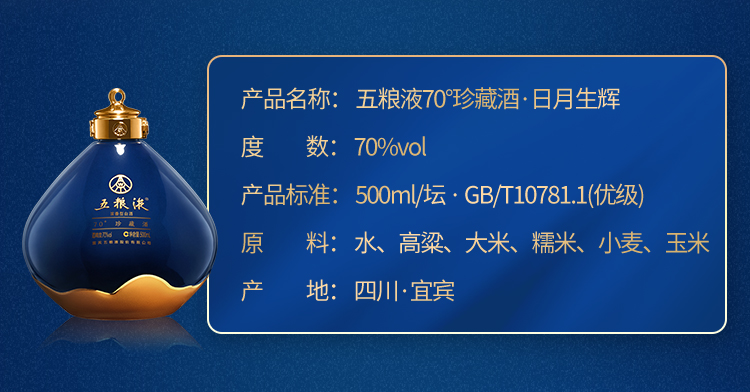 五粮液·日月生辉 珍藏酒 70度 1.5L*1瓶