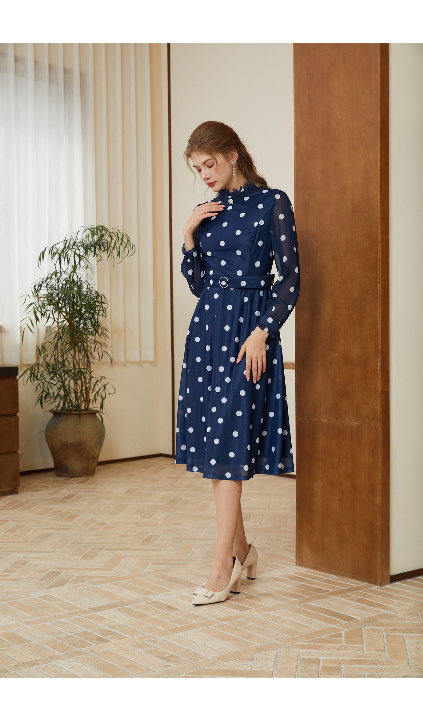 司歌V领端庄几何连衣裙印花气质优雅A881356
