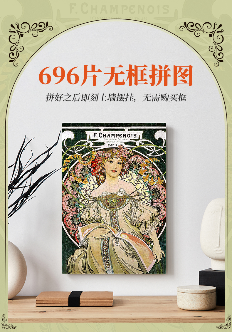 696片 无框塑料拼图 HN1425 穆夏-遐想